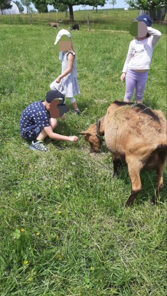Après dîner, nous faisons les mêmes groupe que le matin. Un groupe découvrir des chèvres avec Emilie et Ken. Pendant que l’autre groupe découvre les lapins. Que de bonheur ces moments, juste magnifique.
