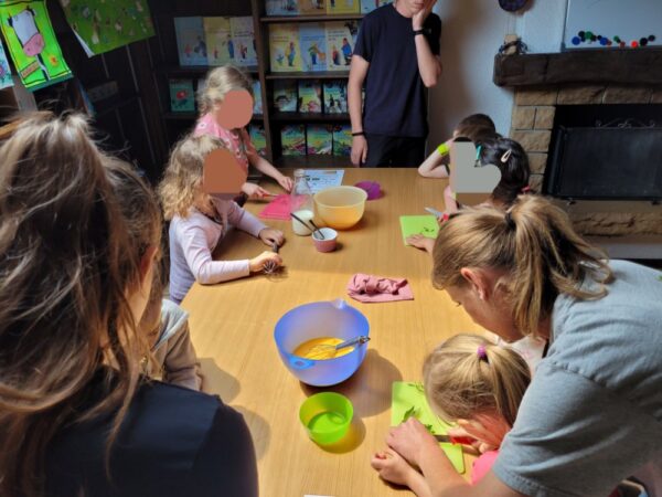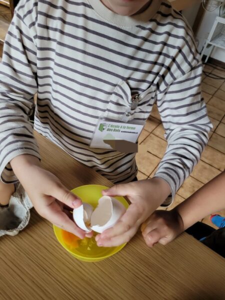 Un groupe vient avec moi chercher les œufs à la cave pendant que le deuxième groupe va chercher les fines herbes au potager. Puis nous nous retrouvons en salle.