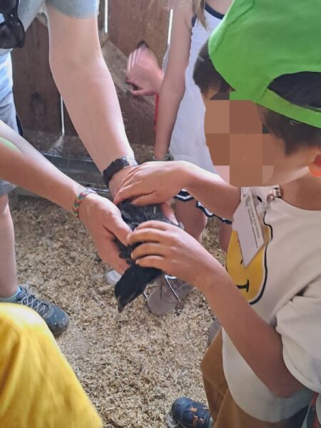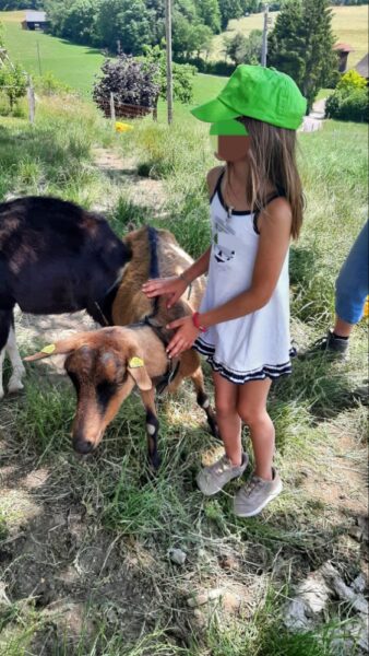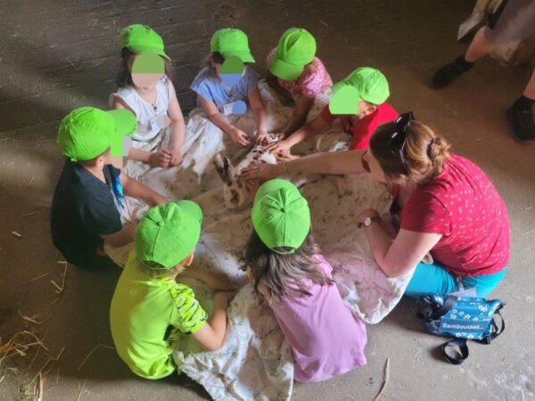 Une fois le pique-nique terminé, 1 groupe vient avec moi découvrir les lapins pendant que l’autre groupe découvre les chèvres avec Emilie. De jolis moment de câlins.