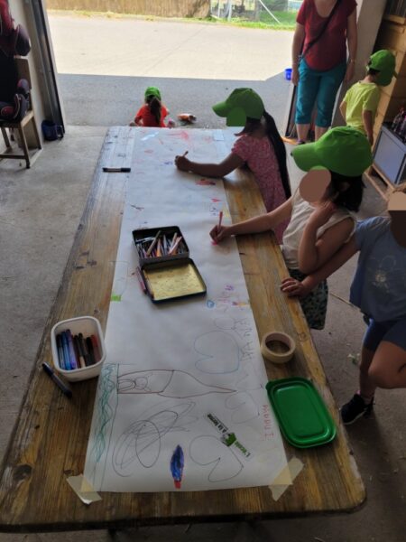 Pour clore cette journée, les élèves profitent d’un moment de détente soit au sentier pieds nus ou en dessinant leur moment préféré de la journée qu’ils emporterons avec eux à l’école.