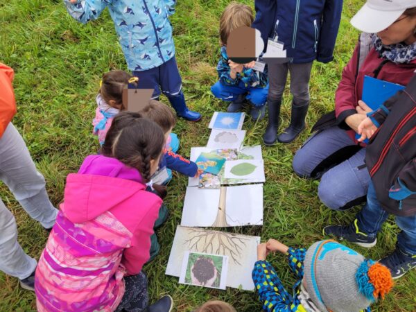 Pendant ce temps, au verger, le deuxième groupe est avec moi pour parler de la morphologie de l’arbre et de ses besoins sans oublier l’importance des abeilles. Les élèves reconstituent l’arbre en nommant chaque partie. Nous parlons de son utilité pour l’arbre et de ce qu’il fait « manger, boire, respirer, tenir debout, etc ». Nous allons même vers l’arbre pour le toucher, l’observer de tout près