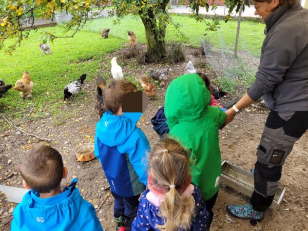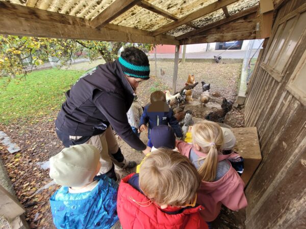 Puis nous profitions des dernières minutes pour donner les épluchures des pommes soit aux lapins ou aux poules et jouer un moment.