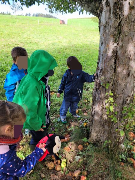 Sur trois demi-journées de septembre et octobre, de jeunes lutins sont venus braver le froid, la bise ou encore la pluie mais aussi parfois un petit rayon de soleil pour découvrir le verger en automne.