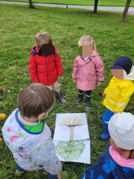 Pendant que la compote refroidit un peu, nous retournons au verger. Là, nous parlons, survolons les différentes parties de l’arbre : racines, tronc et branches.