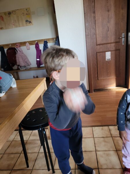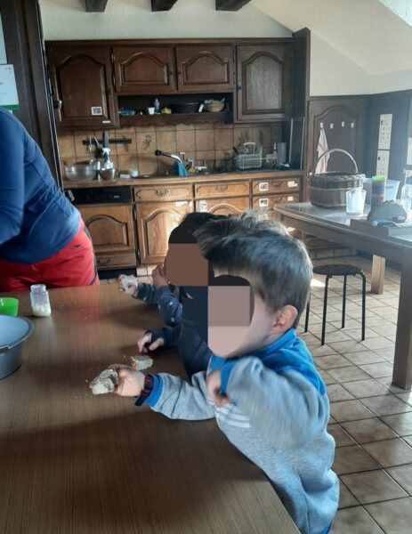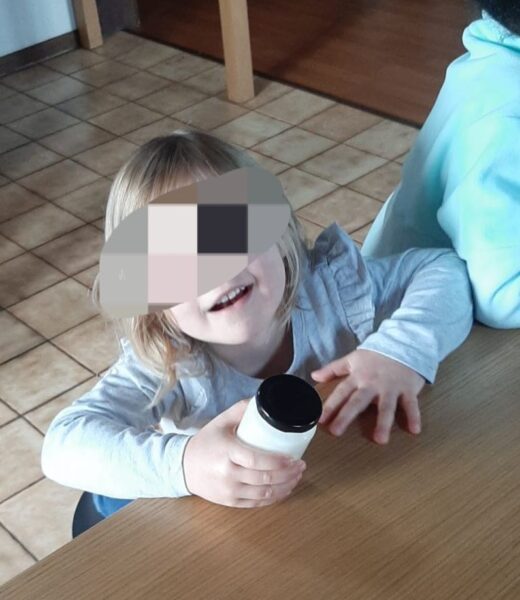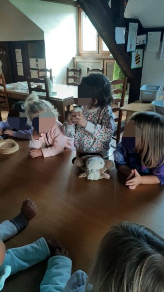 Grâce à leur jeunes biscoteaux, les enfants ont secoué un petit pot de crème entière jusqu’à obtention du beurre. Celui-ci fût déguster sur une tranche de pain accompagné par un verre de lait frais.