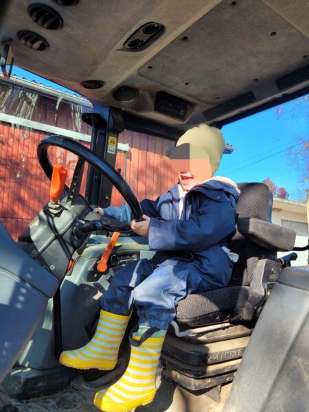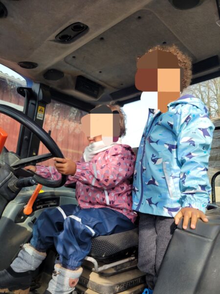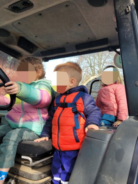 Après une collation bien méritée, nous retournons dehors pour faire le jeu de la ferme de Maturin pendant que chacun son tour, les enfants vont pouvoir s’assoir sur le siège du conducteur de tracteur. Que d’étoiles dans les yeux !!!