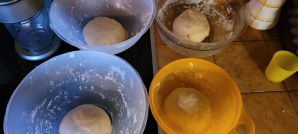Nous voilà à nouveau les manches retroussées, d’abord pour faire les petits pains hamburger afin qu’ils lèvent encore un peu, puis pour confectionner nos steaks hachés!