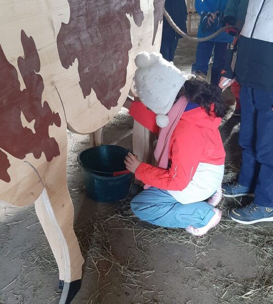 Pour clore la partie de l’étable, les élèves découvrent « Alsace, notre vache modèle » qu’ils ont pu traire.