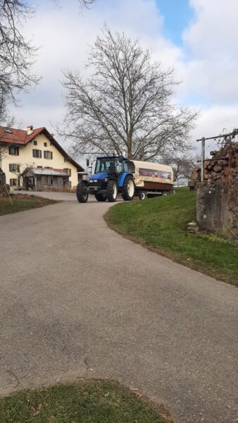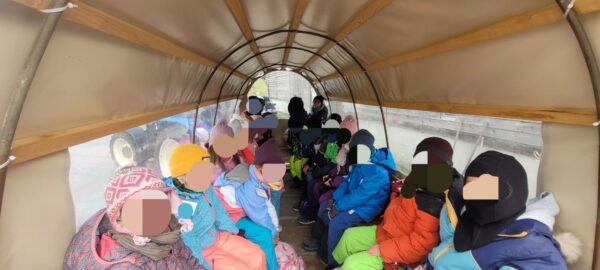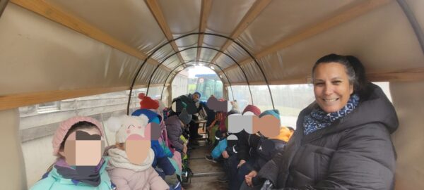 Pour la suite de la matinée, nous prenons le tracteur et la chariote pour nous diriger à la ferme des Bois.
