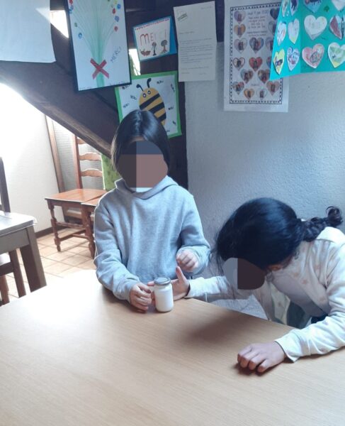 Pour finir la matinée nous allons en salle pour fabriquer du beurre. Grâce à leurs biscoteaux, les élèves vont secoué un petit pot qui contient de la crème entière jusqu’à l’obtention du beurre. Ils ont bien joué le jeu et transpiré ! Nous avons dégusté celui-ci sur une tranche de pain.