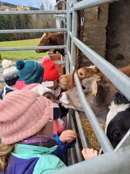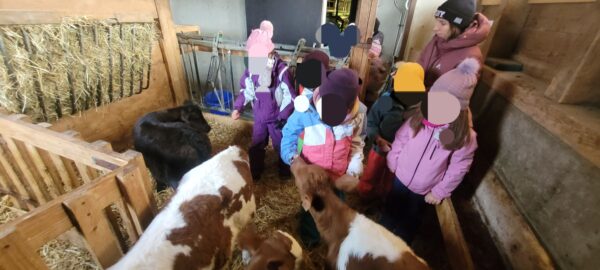 Ces 2 dernier jeudis, les élèves 4P de Véronique de Blonay et 1-2P d’Annik de Palézieux sont venus découvrir l’étable et ses habitantes.