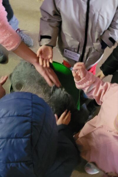 Nous avons commencé par un jeu de question-réponse sur le lapin puis par une rencontre tout en douceur avec nos adorables animaux. Les élèves ont pu les observer, les caresser et découvrir leur morphologie : la forme de leur corps, leurs pattes adaptées au saut, leur pelage doux… Un premier contact précieux pour mieux comprendre ces petits compagnons à grandes oreilles.