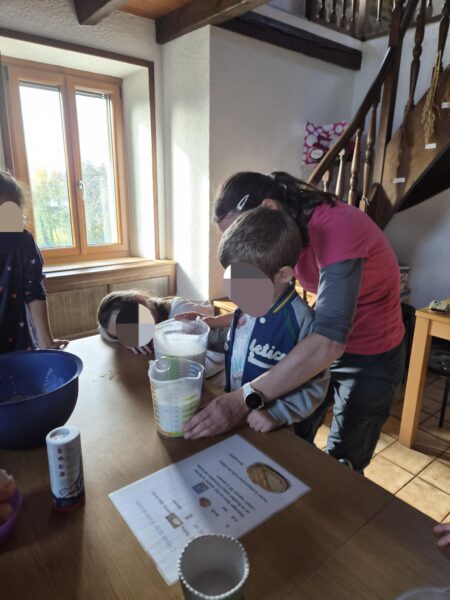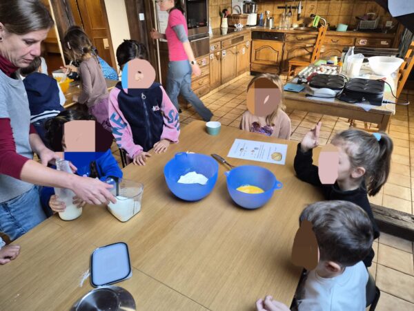 Vendredi 7 novembre, nous avons accueilli la classe de Cathy de Vevey pour une journée riche en découvertes, en créations gourmandes et en rencontres animalières. Une belle immersion dans le quotidien de la ferme !
