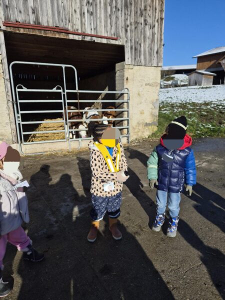 Jeudi 27 novembre, la ferme a accueilli la classe de Francisca, accompagnée par Anne Giavina de Vevey pour une journée tout en douceur, rires et découvertes autour de l’univers des vaches et de leurs voisines les chèvres.