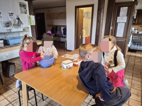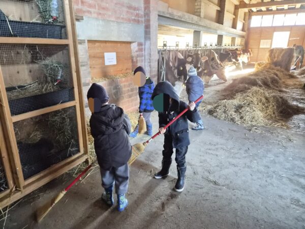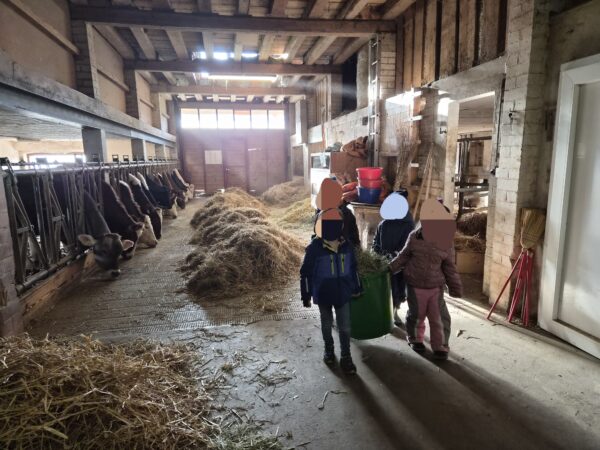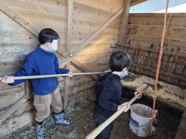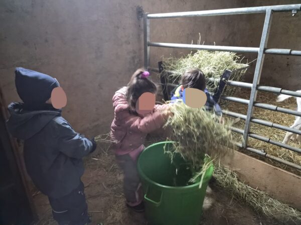Durant six semaines, tous les mardis matins, un petit groupe de huit élèves est venu à la ferme pour partager un moment privilégié au contact des animaux. Ces matinées n’étaient pas seulement l’occasion de découvrir la vie de la ferme, mais aussi un vrai terrain d’apprentissage du vivre ensemble : apprendre à attendre son tour, à partager, à aider les autres, à prendre sa place… ou parfois à la laisser.