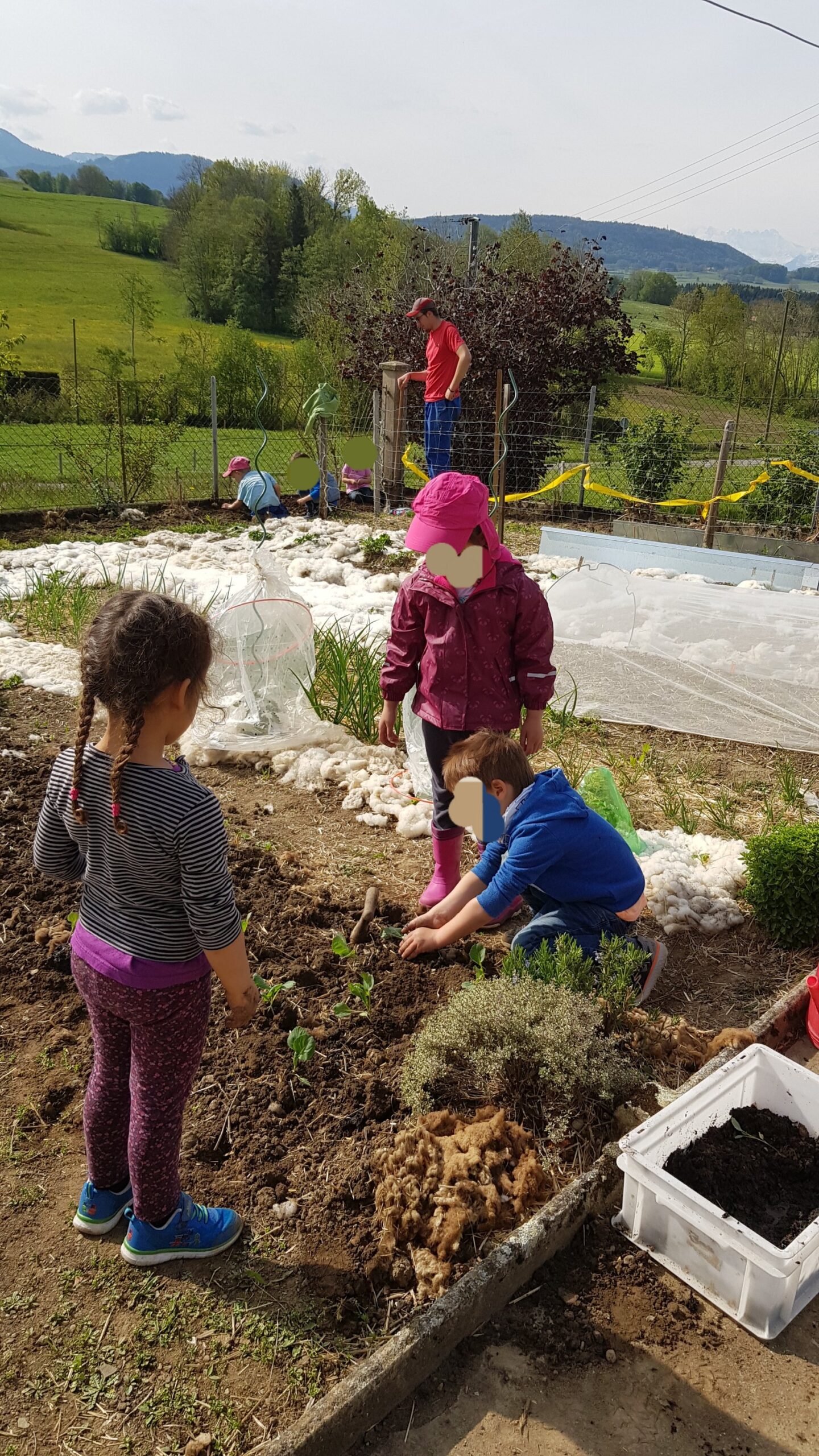 Ce matin les enfants ont découvert comment plante les choux, poireaux et dahlia. 🌱 Puis nous les avons protégé avec de la laine de mouton! 🐏