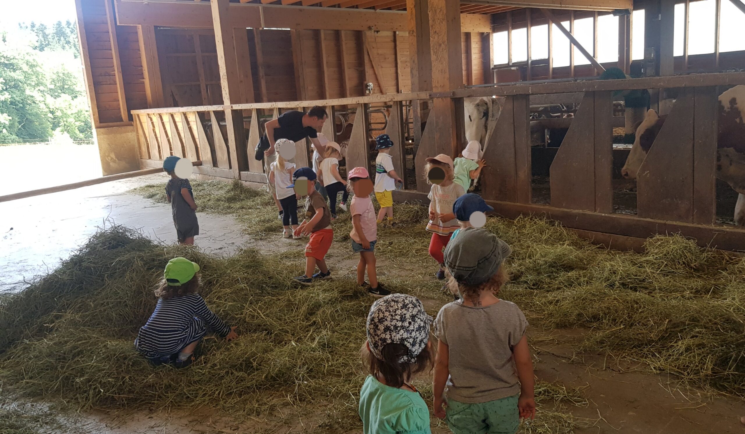 Découverte des vaches et de leur veaux, dont nos jumelles ainsi que de la salle de traite! Même à cet âge là, les enfants mon surprise par toutes leurs questions! 🤩