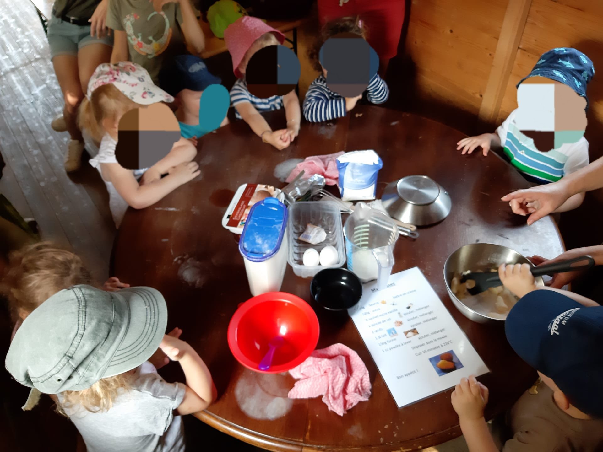 Fabrication de madeleines en 2 groupes, qu’ils ont pu déguster en rentrant de la ferme en Fochaux sur la chariotte! 🥧