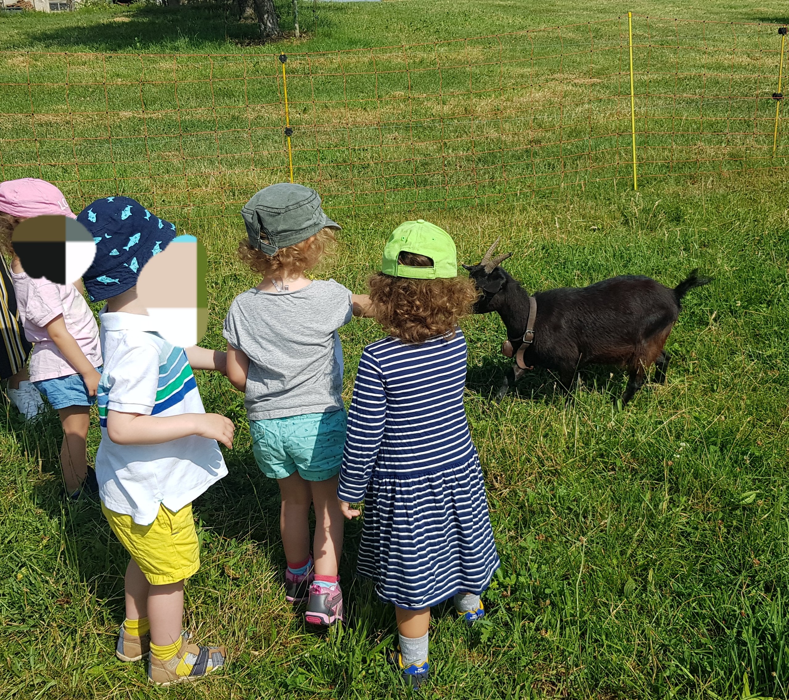 Ils ont pu nourrir poules, lapins,🐇🐓 chèvres et vaches🐄! Même que nous avons déplacé les chèvres ensembles! Car celles-ci en ont profiter pour filer du parc quand on y allait… 🐐