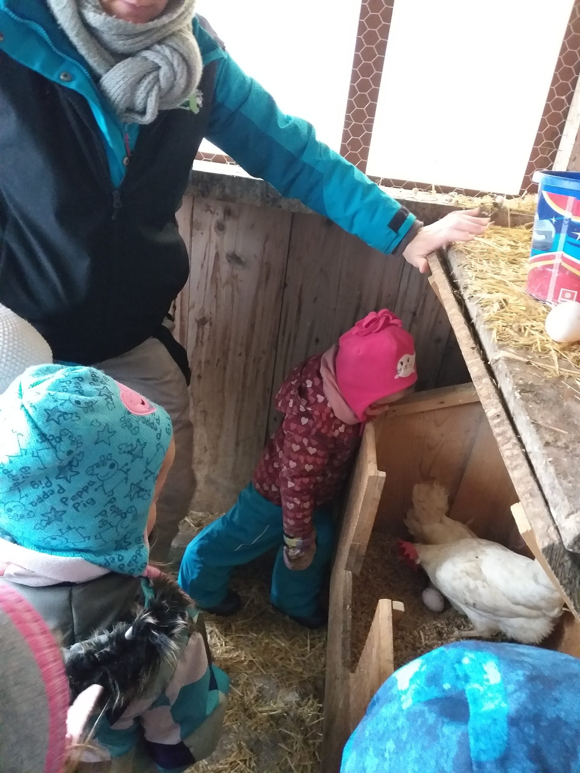 De nouveau un beau moment remplie de magie avec les animaux! Et même que les poules ont pris l’habitude! Malgré le temps venteux de hier, elles sont sortie en courant du poulailler en voyant nos jeunes visiteuses, de vrai gourmandes, elle savaient bien qu’on allait leur donner a manger, trop chou! 😍 Et les chèvres ne se font pas prier pour les câlins! De vraies habituées!