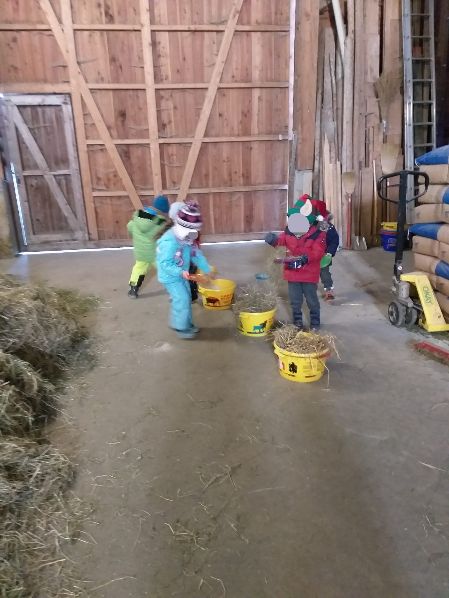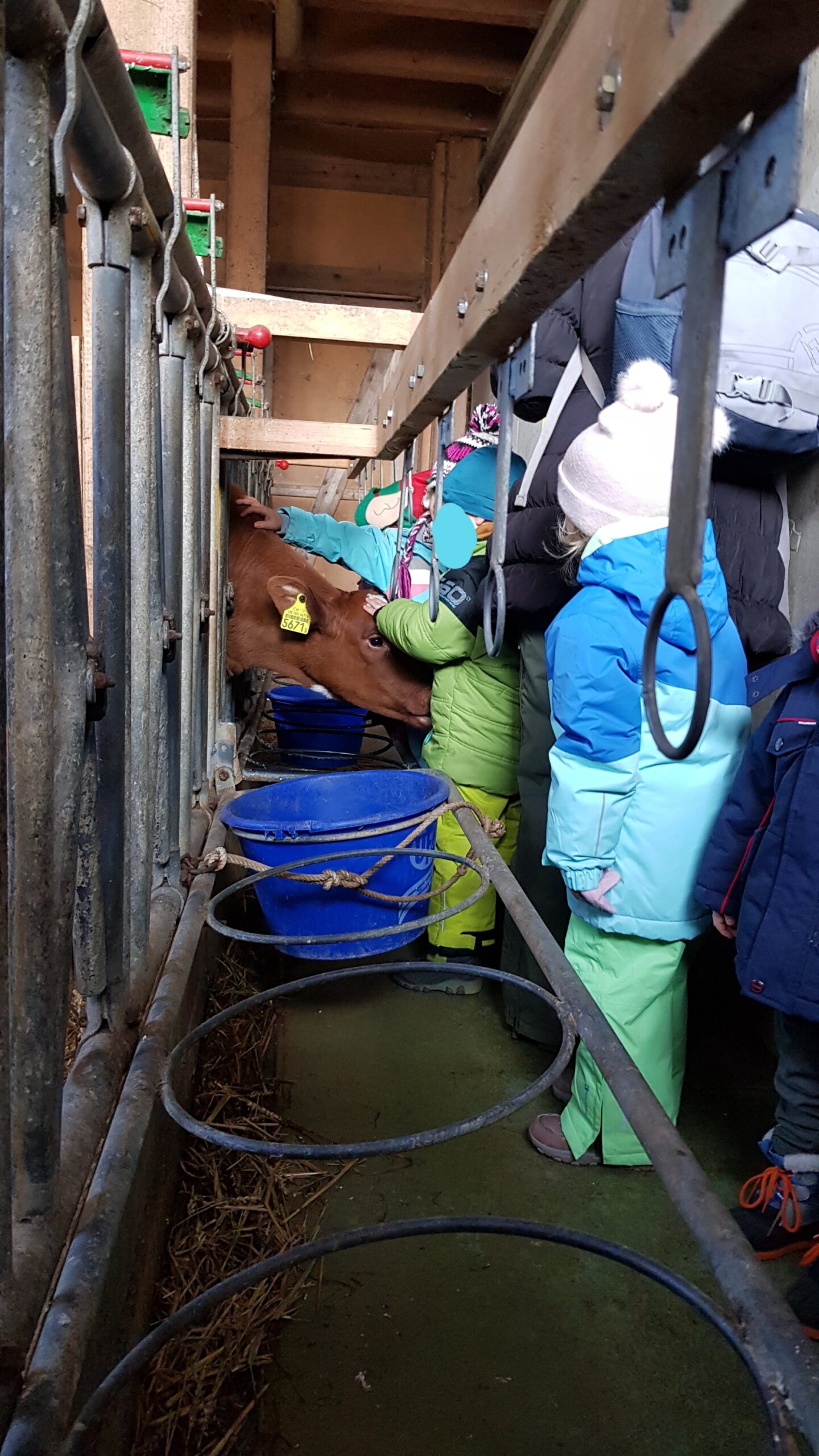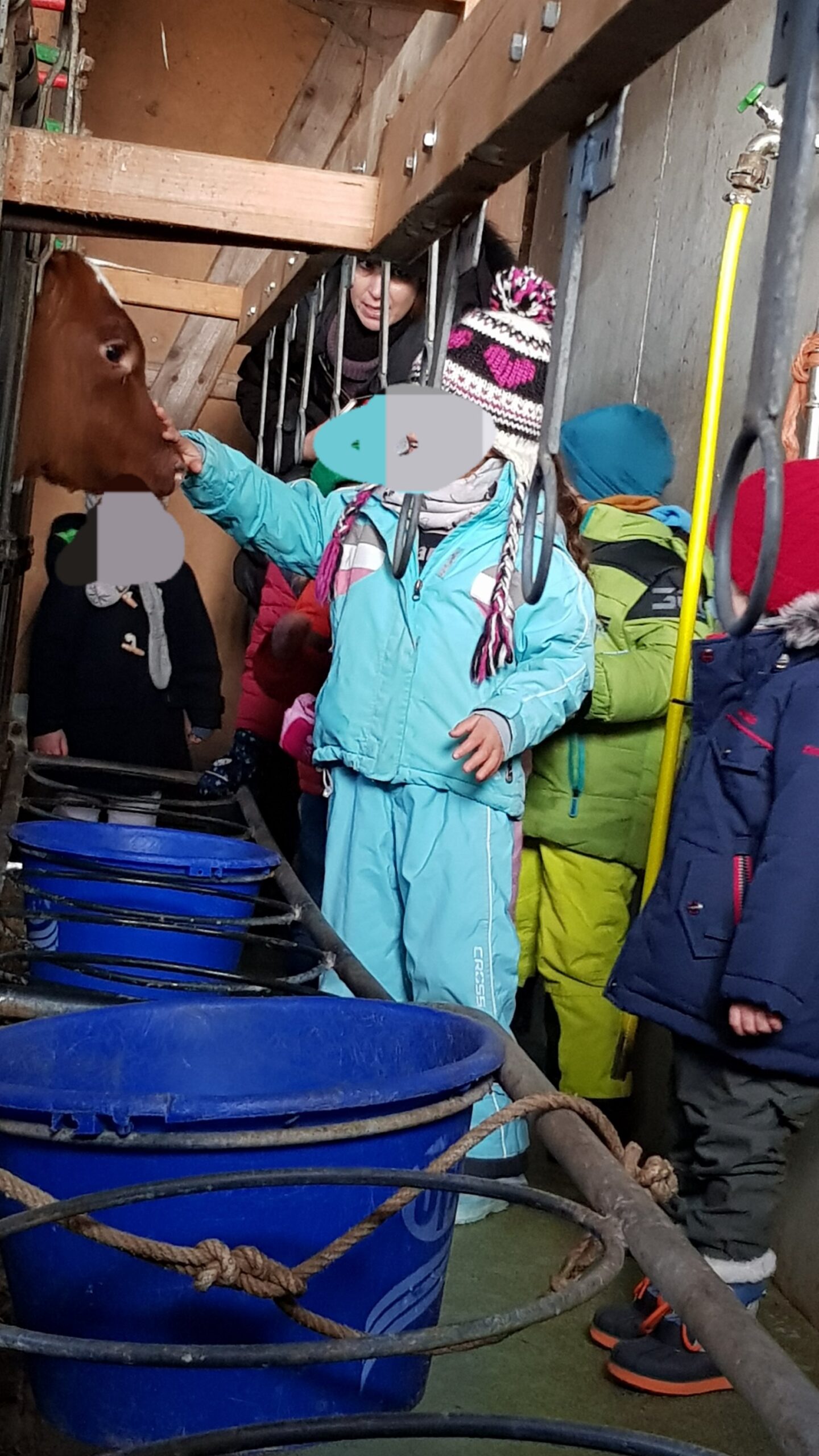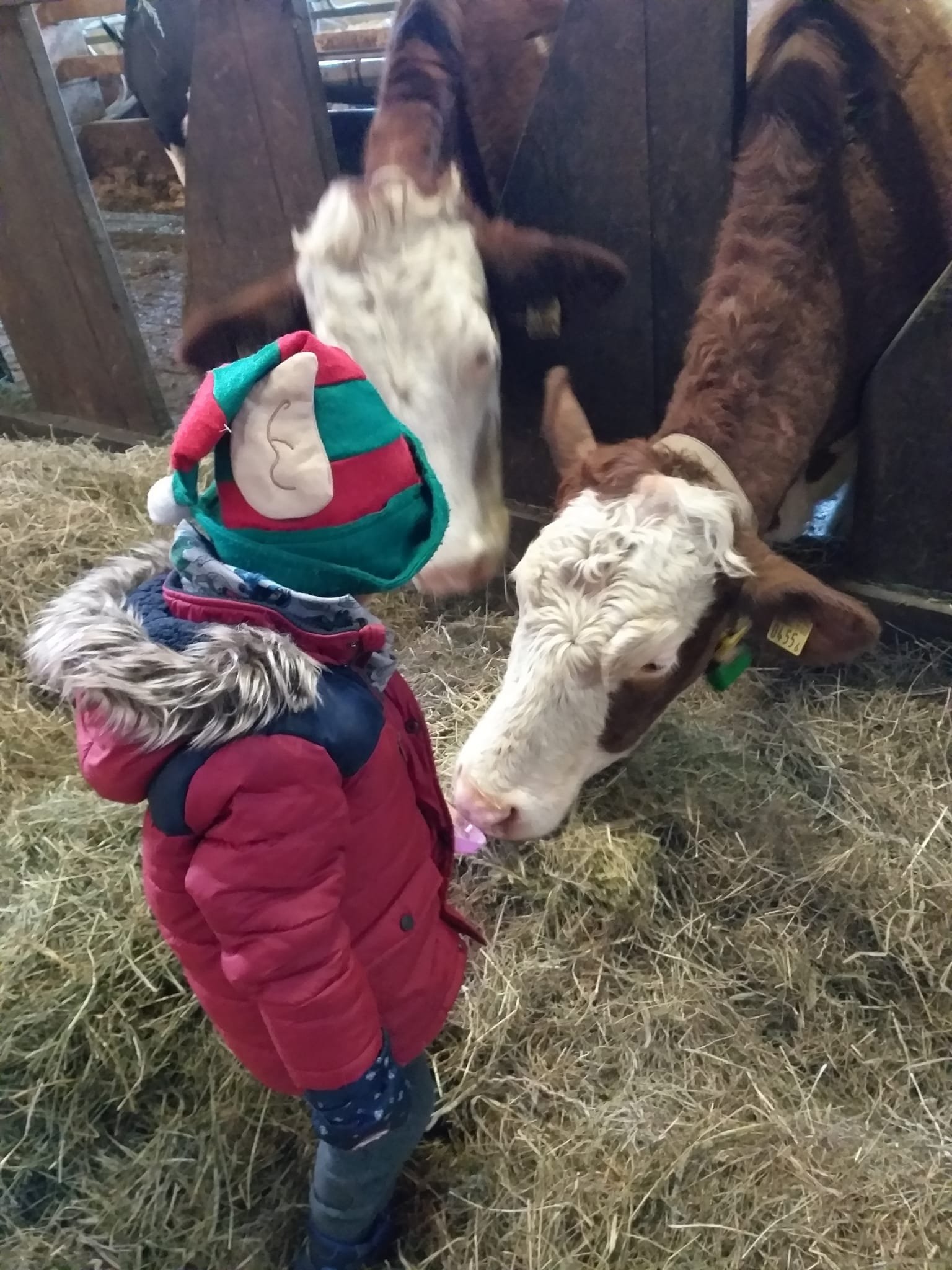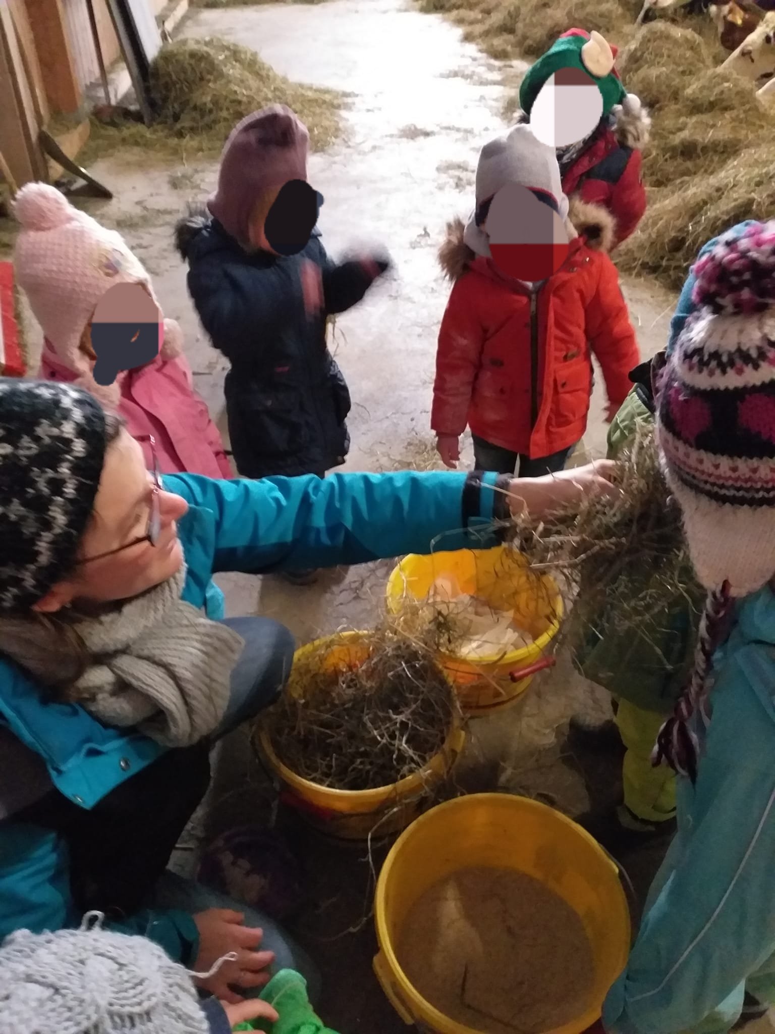 Les jeunes bambins de la boîte à couleur sont venus affronter le froid ❄ pour découvrir la vie de l’étable. 🏡