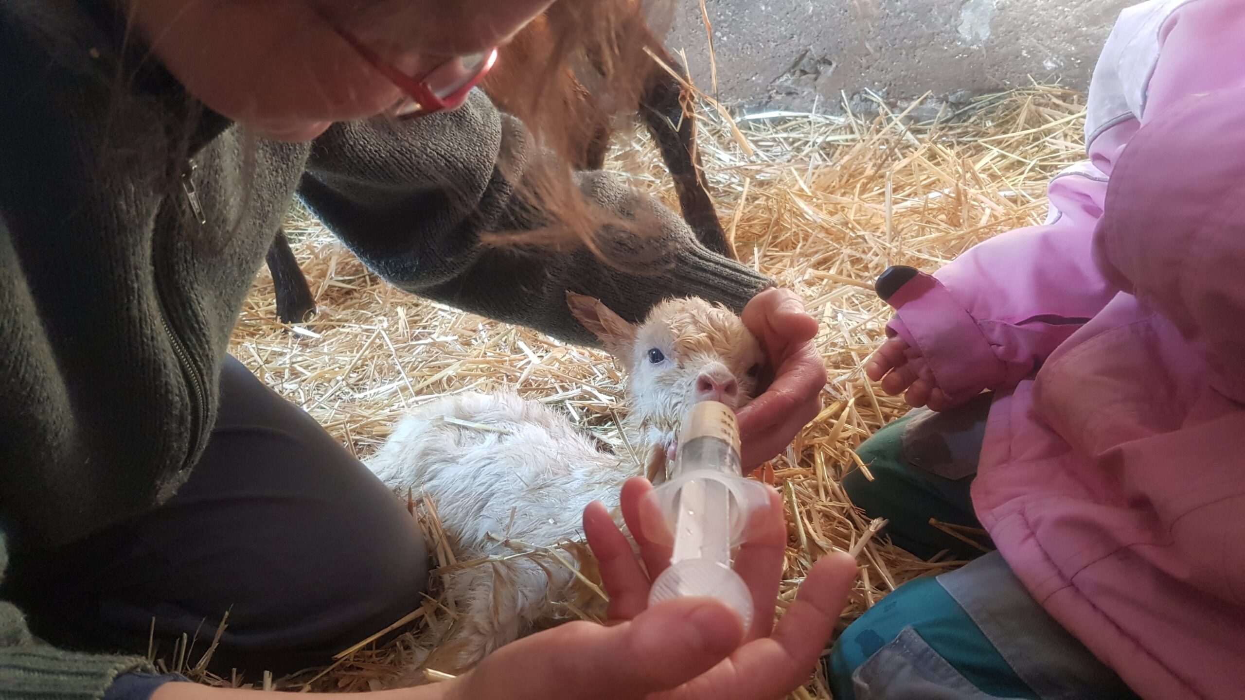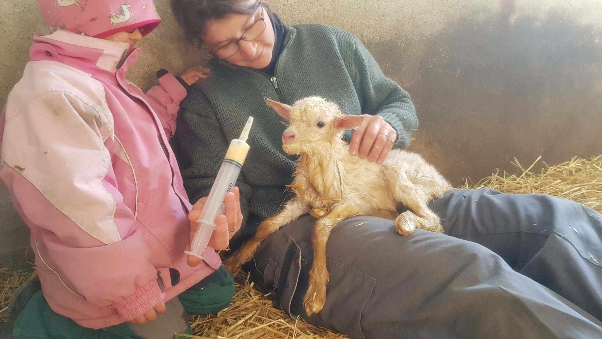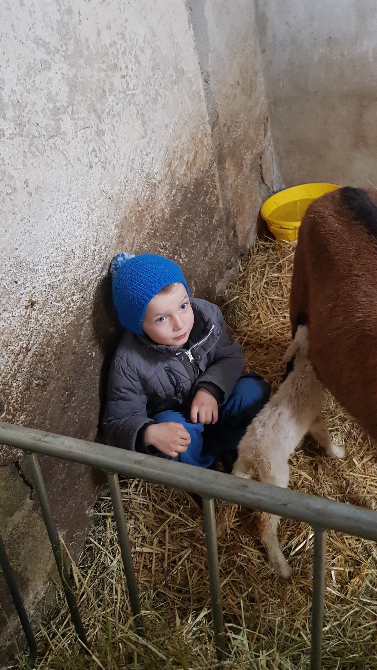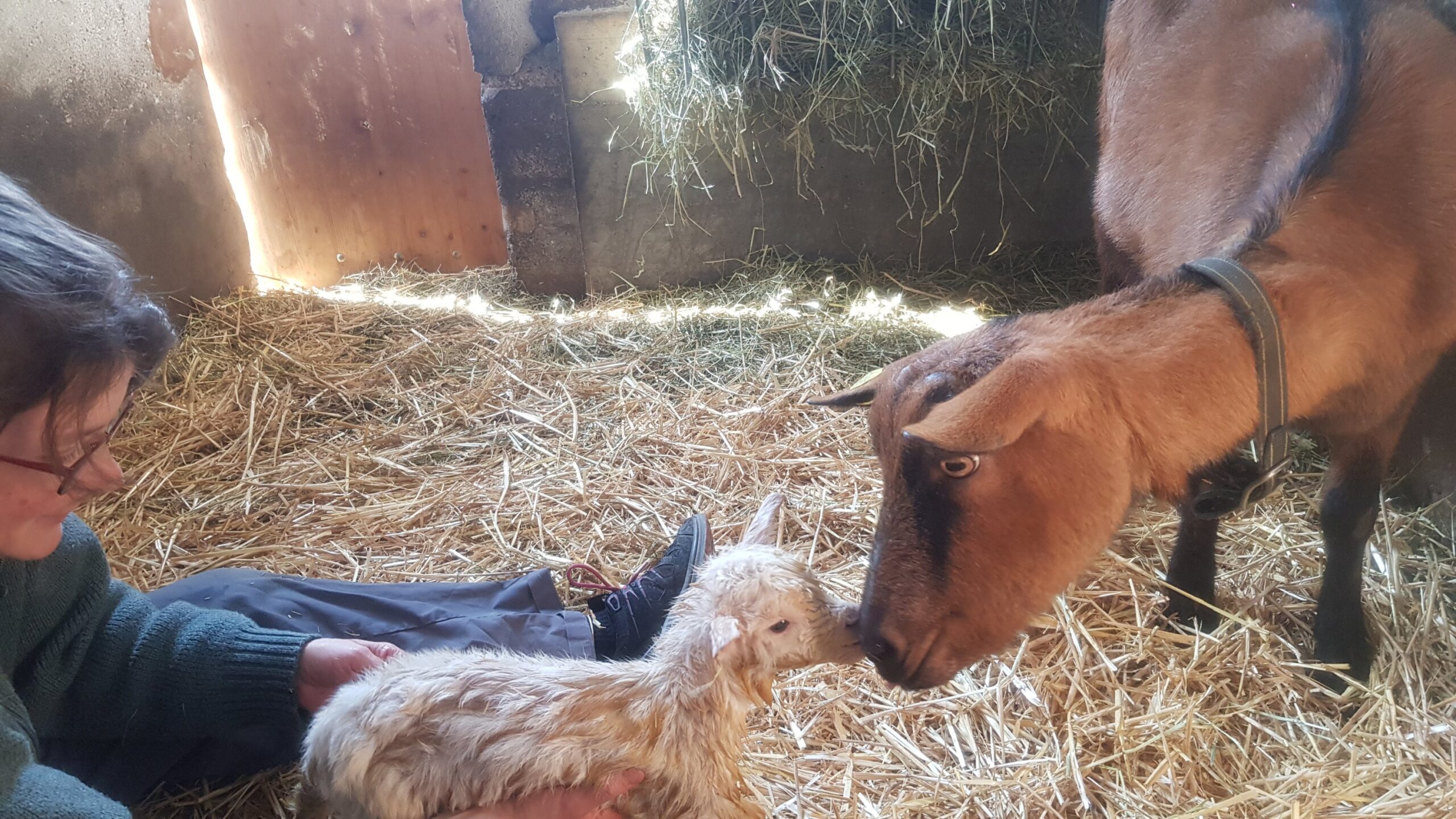 En fin d’après-midi, nous l’avons tenue sous sa maman pour qu’elle puisse téter. Depuis ce moment là, elle s’est nourri que du lait de sa mère! 💞 Et ce matin, pour notre plus grande joie, elle était debout! 🥳