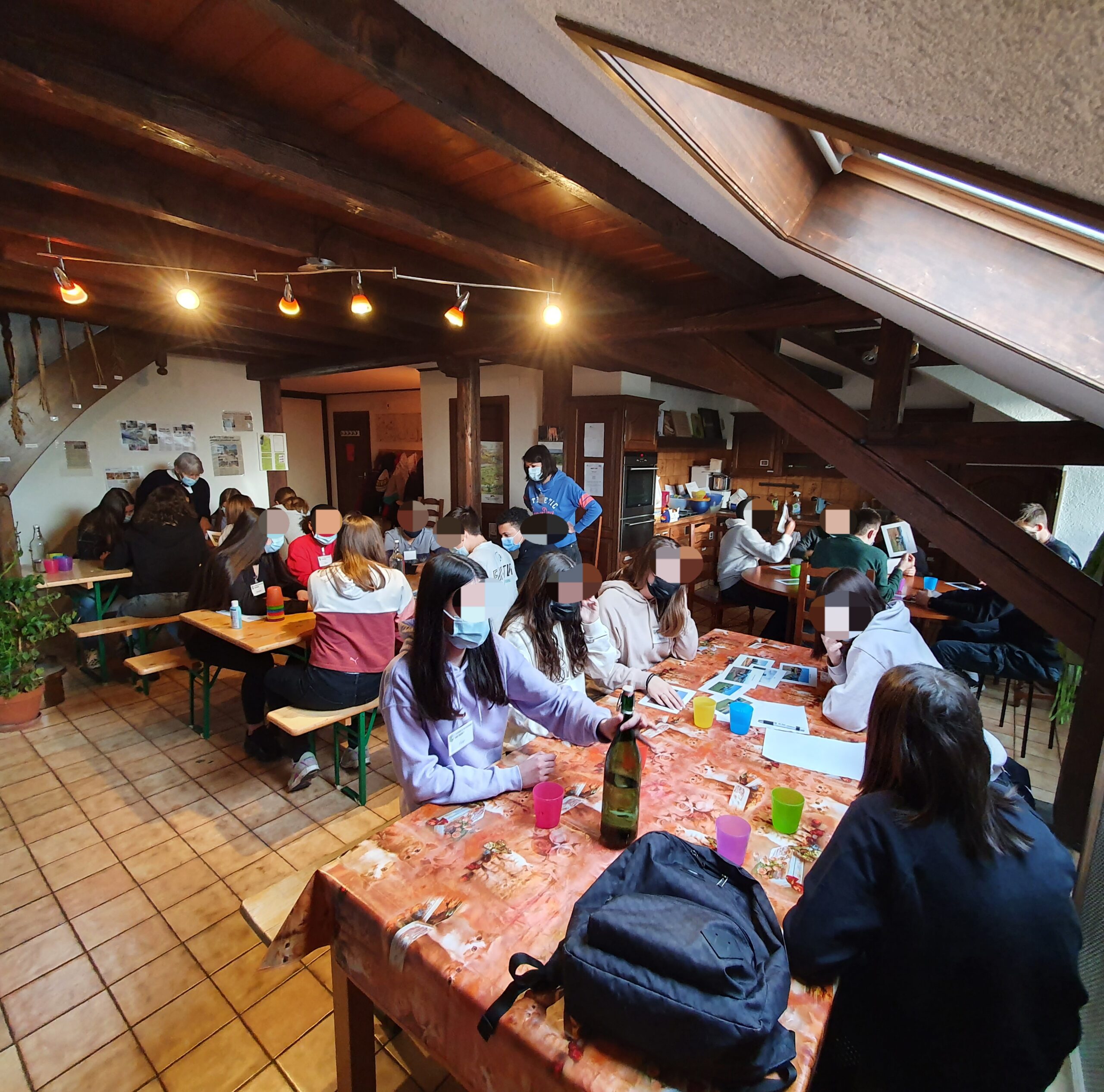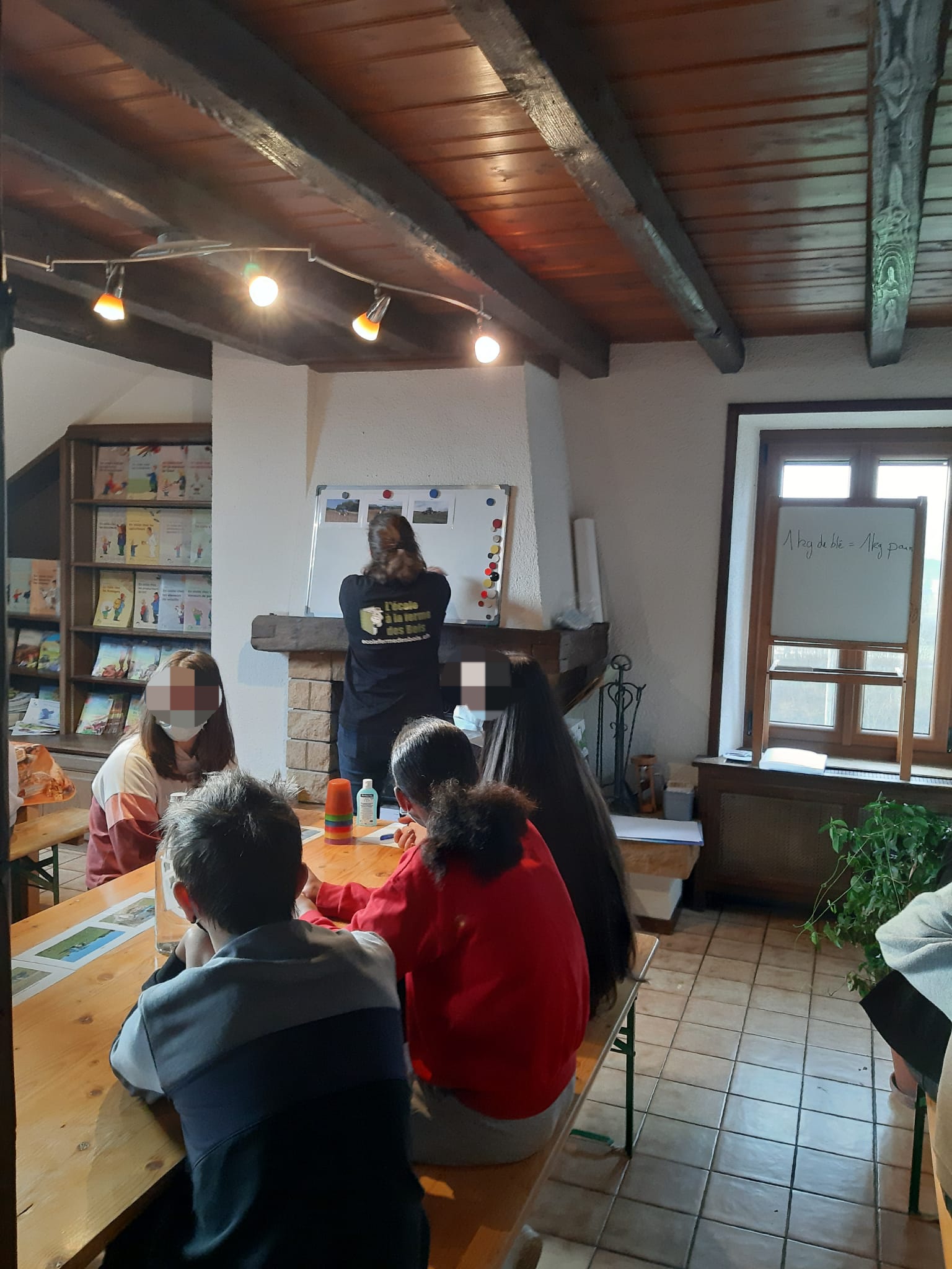 De retour en salle, nous avons parlé du Gruyère. Quelle quantité de litre de lait faut-il pour faire une meule. Le prix payé pour 1 litre de lait et nous avons visionné une vidéo sur la coopération du lait équitable. 🥛