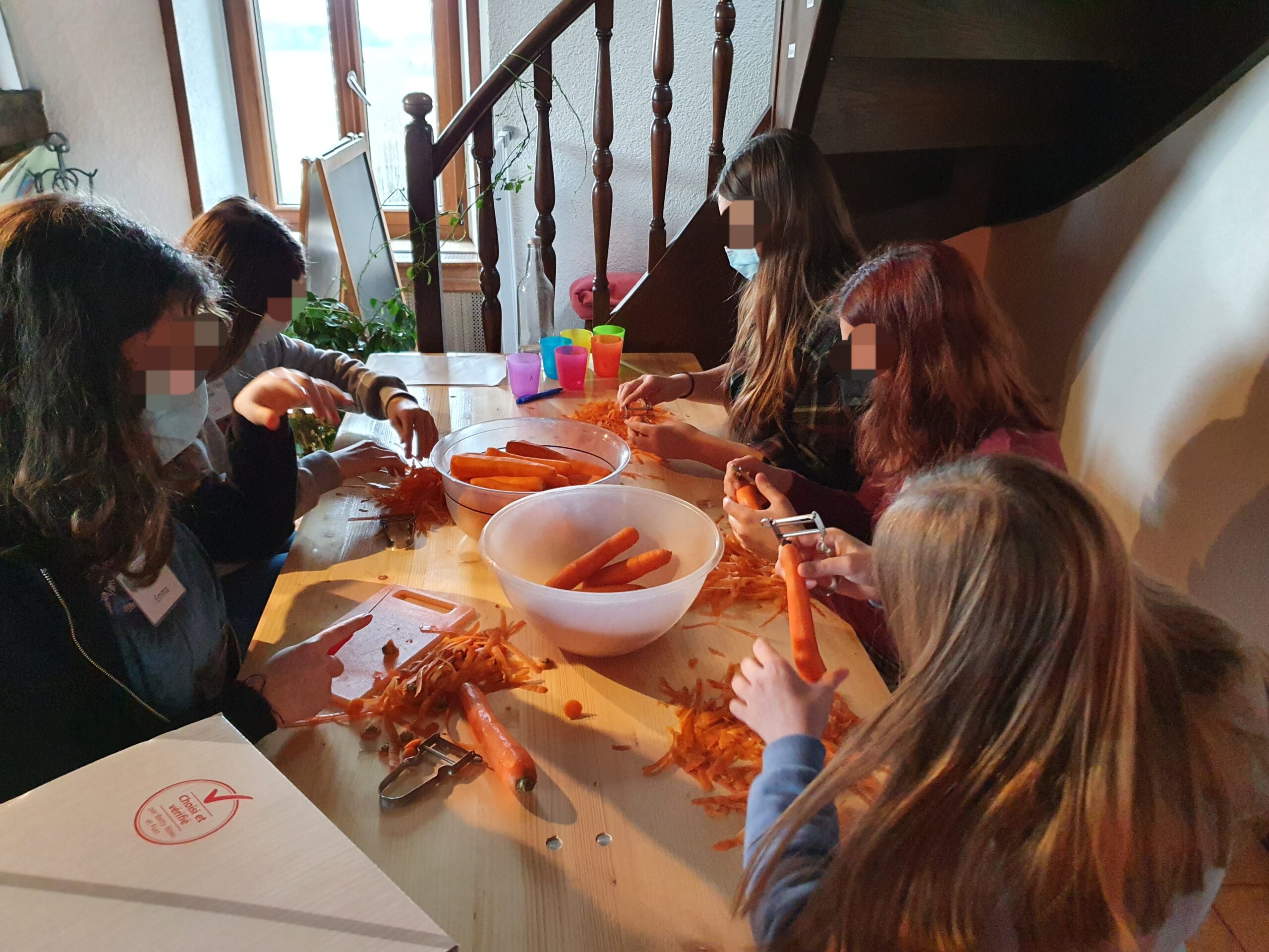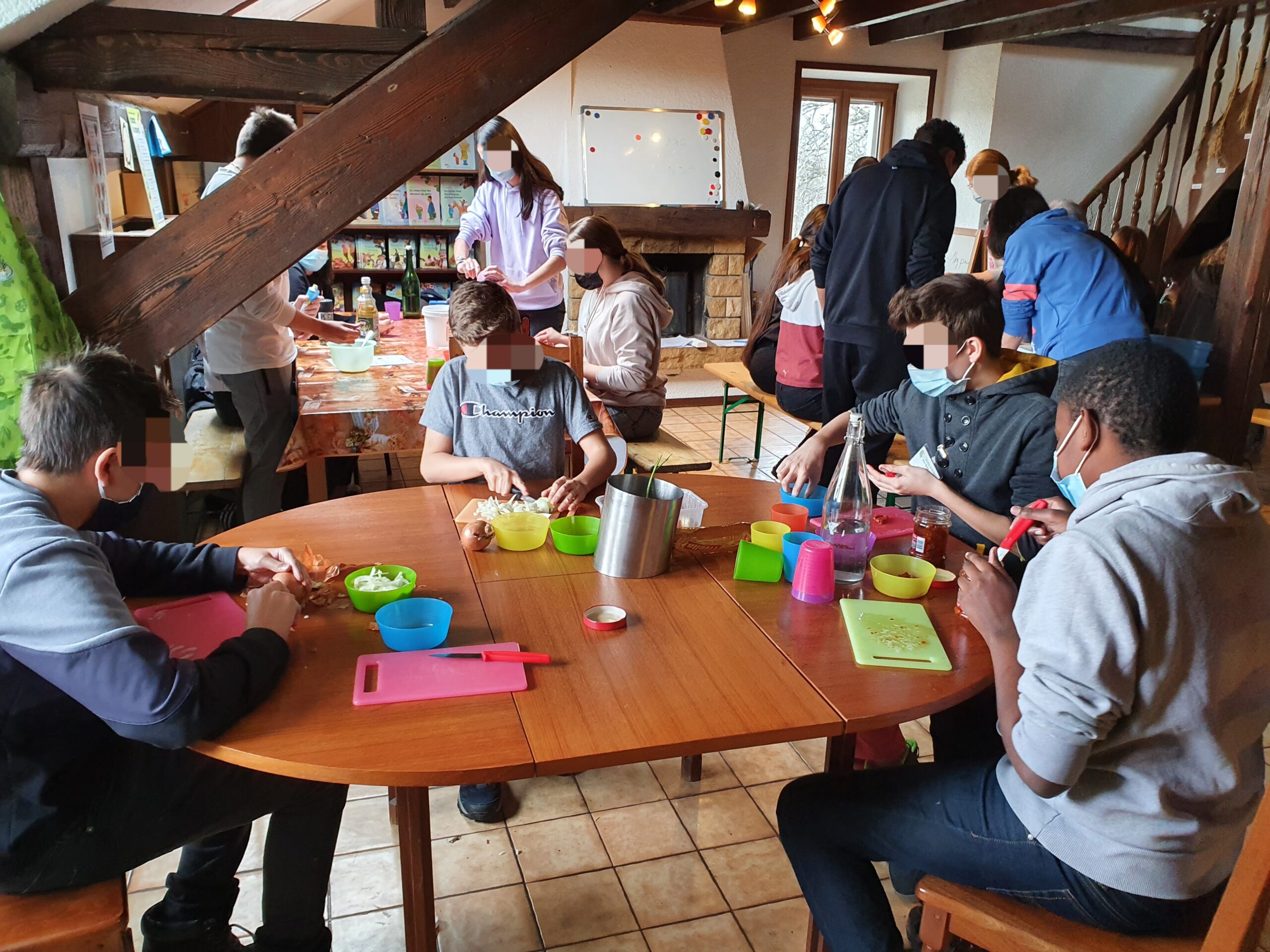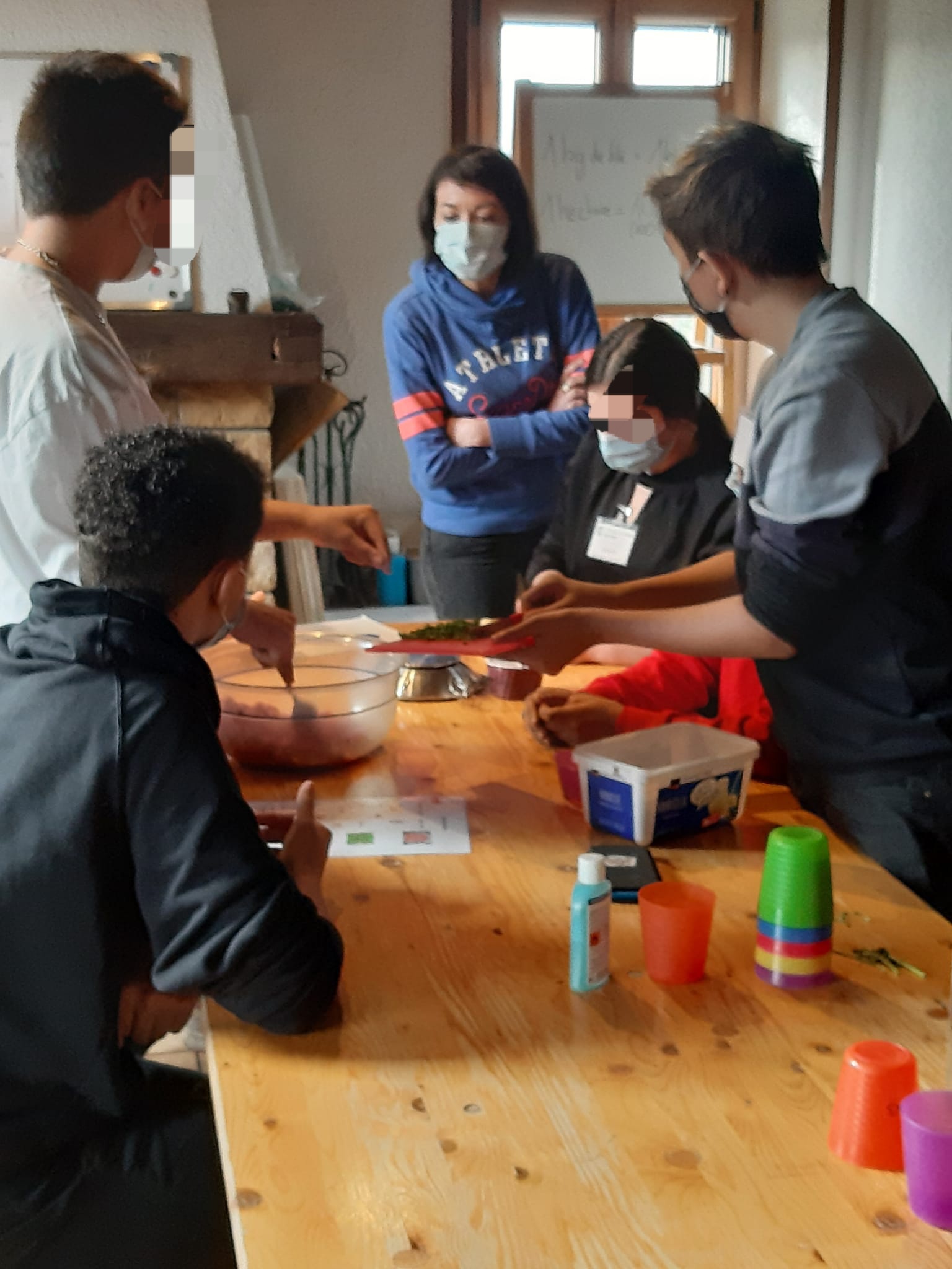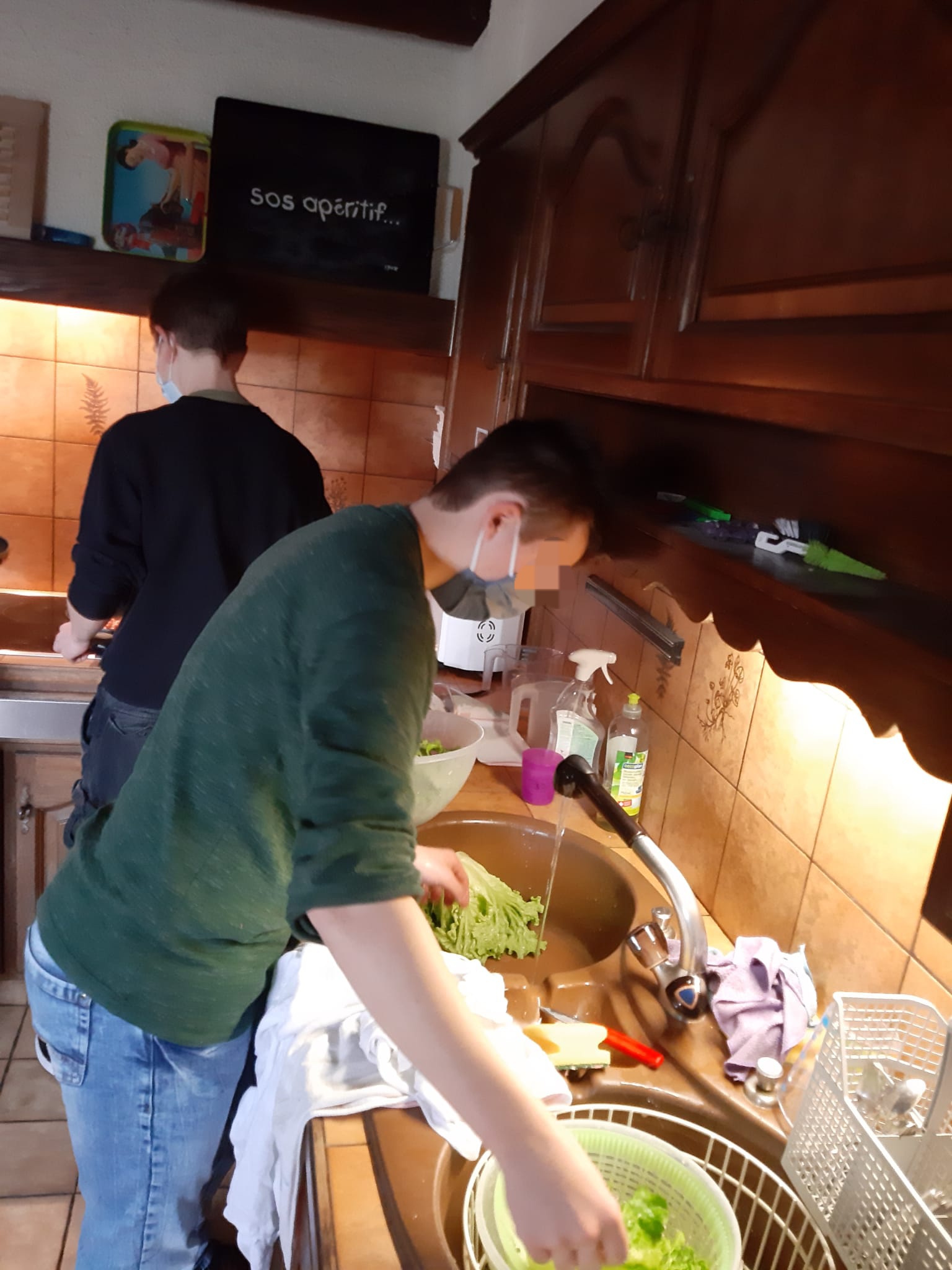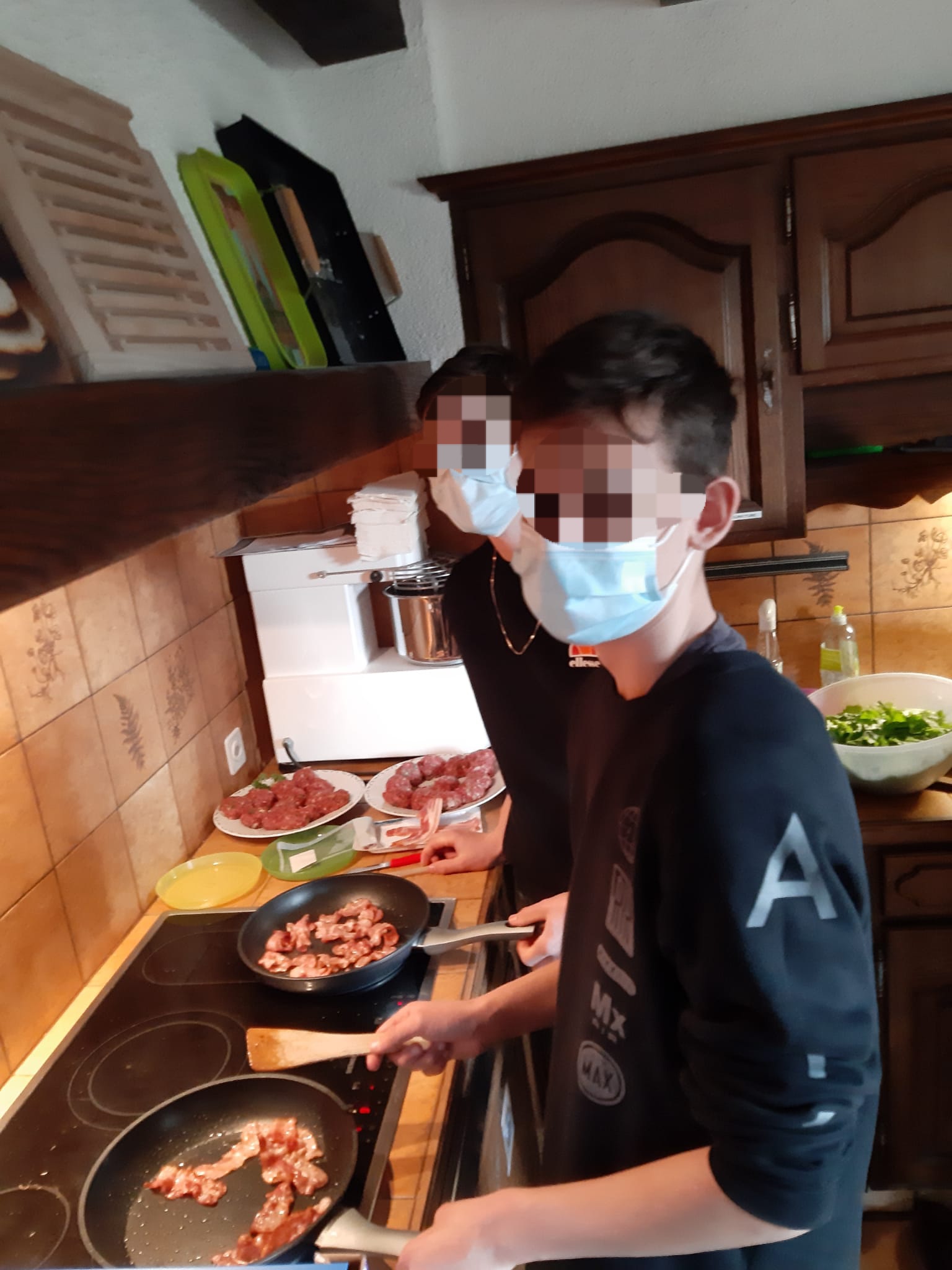 Nous avons partagé la classe en plusieurs groupes. Un groupe au fourneau pour cuire bacon et steak. 🥓 Un groupe a préparé les légumes.🍅🥬🧅 1 groupe s’est occupé de la sauce à salade et de la mayonnaise maison.🥚 1 groupe a façonné les petits pains pour les cuire et 1 groupe a épluché et râpé les 🥕.