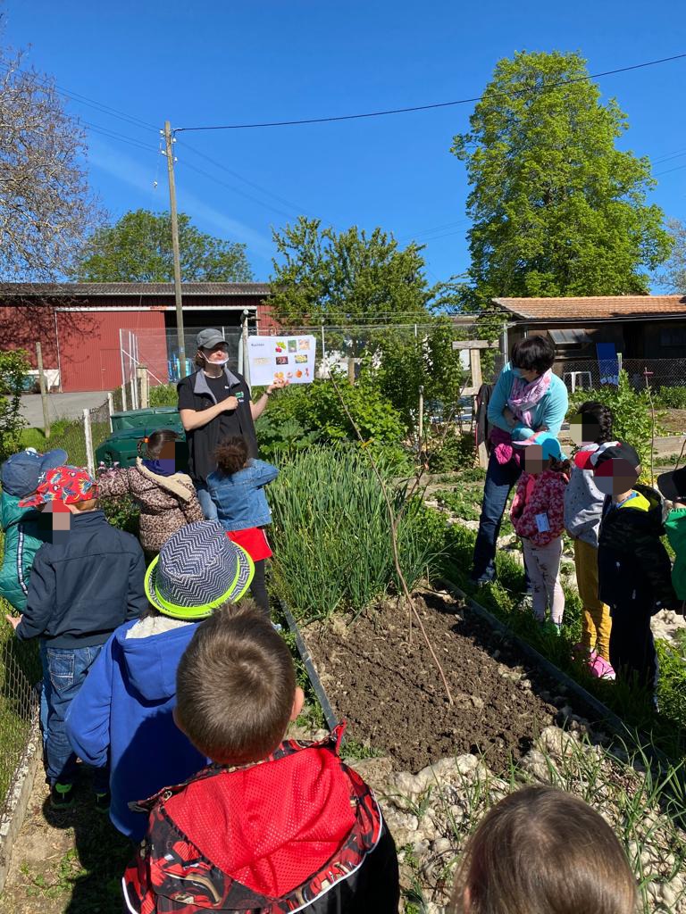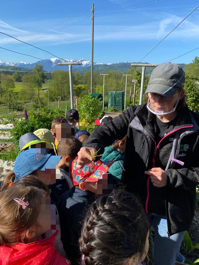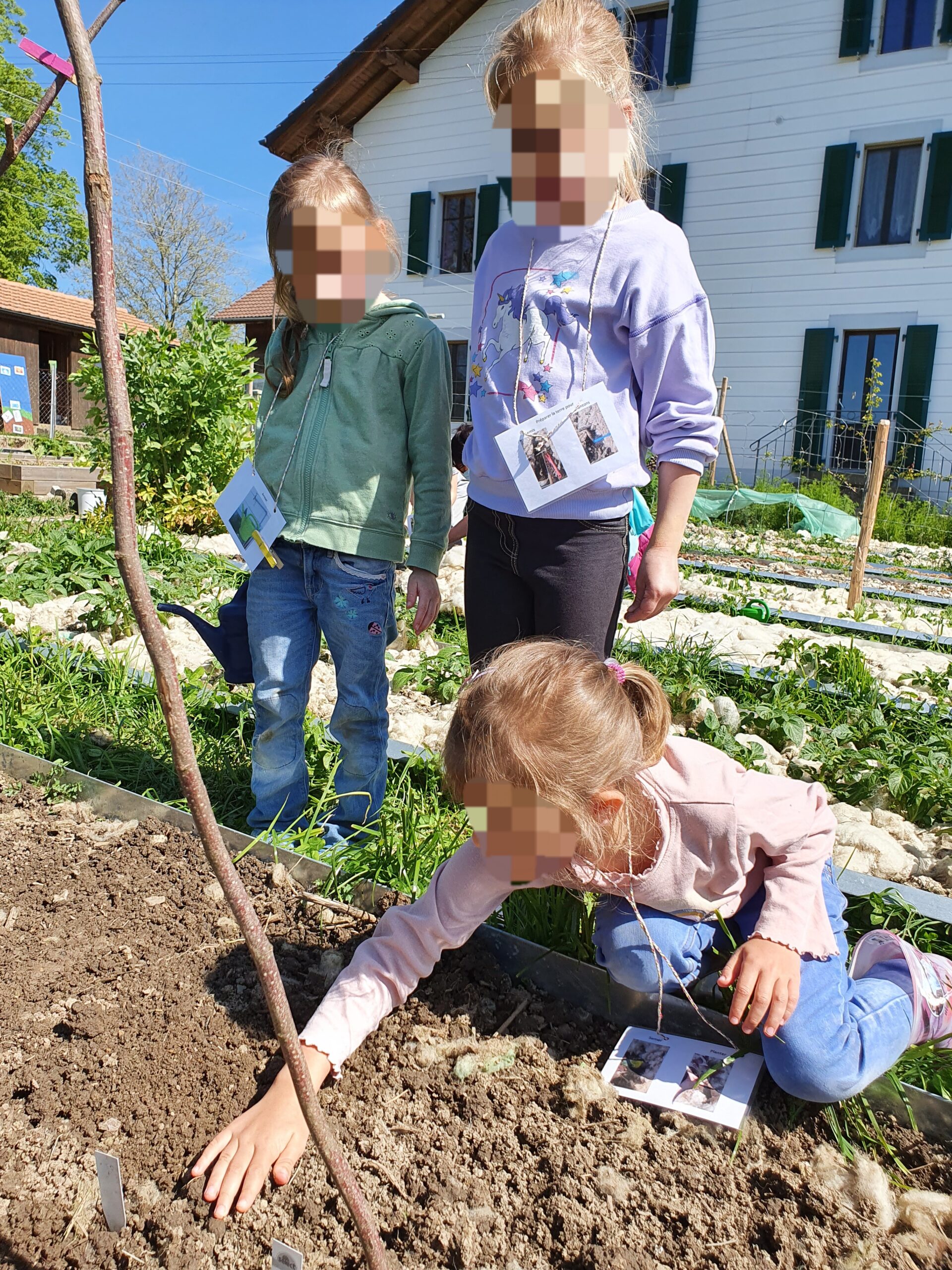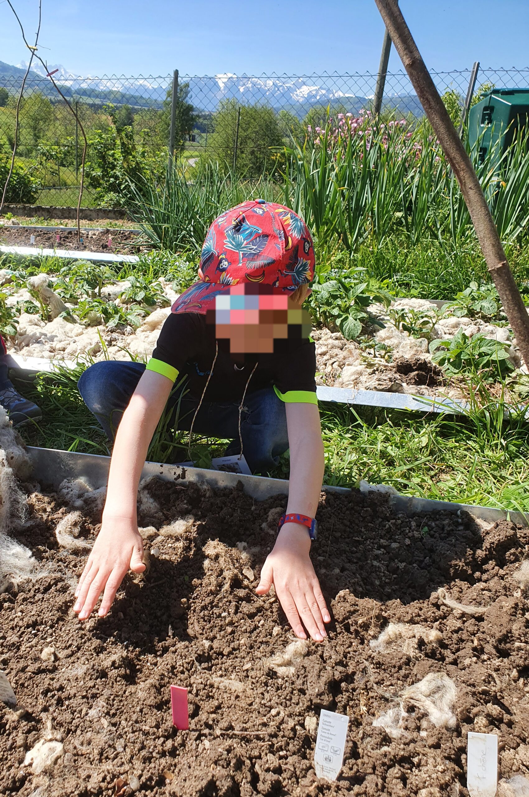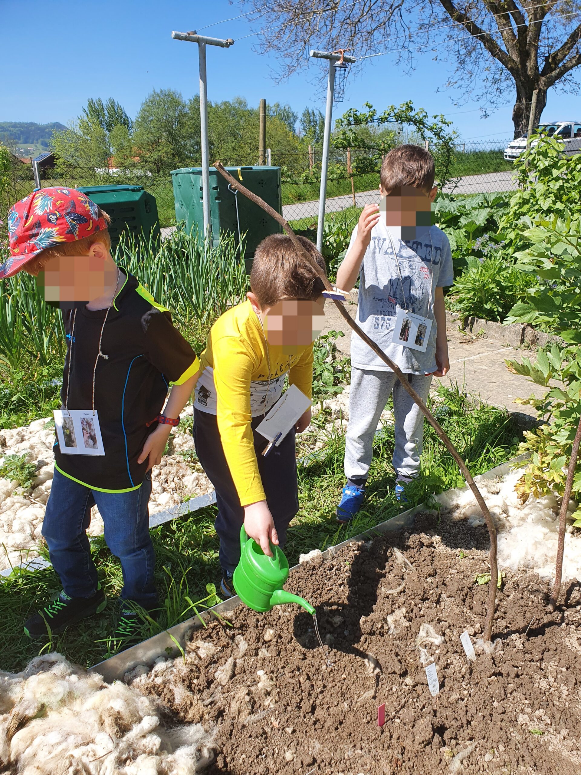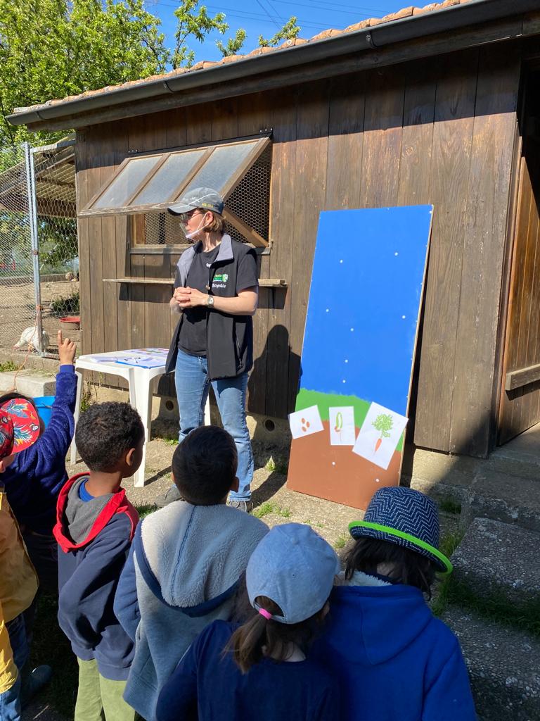 Ce vendredi matin, les élèves 1-2P de Annik Colomb sont venus découvrir le potager.