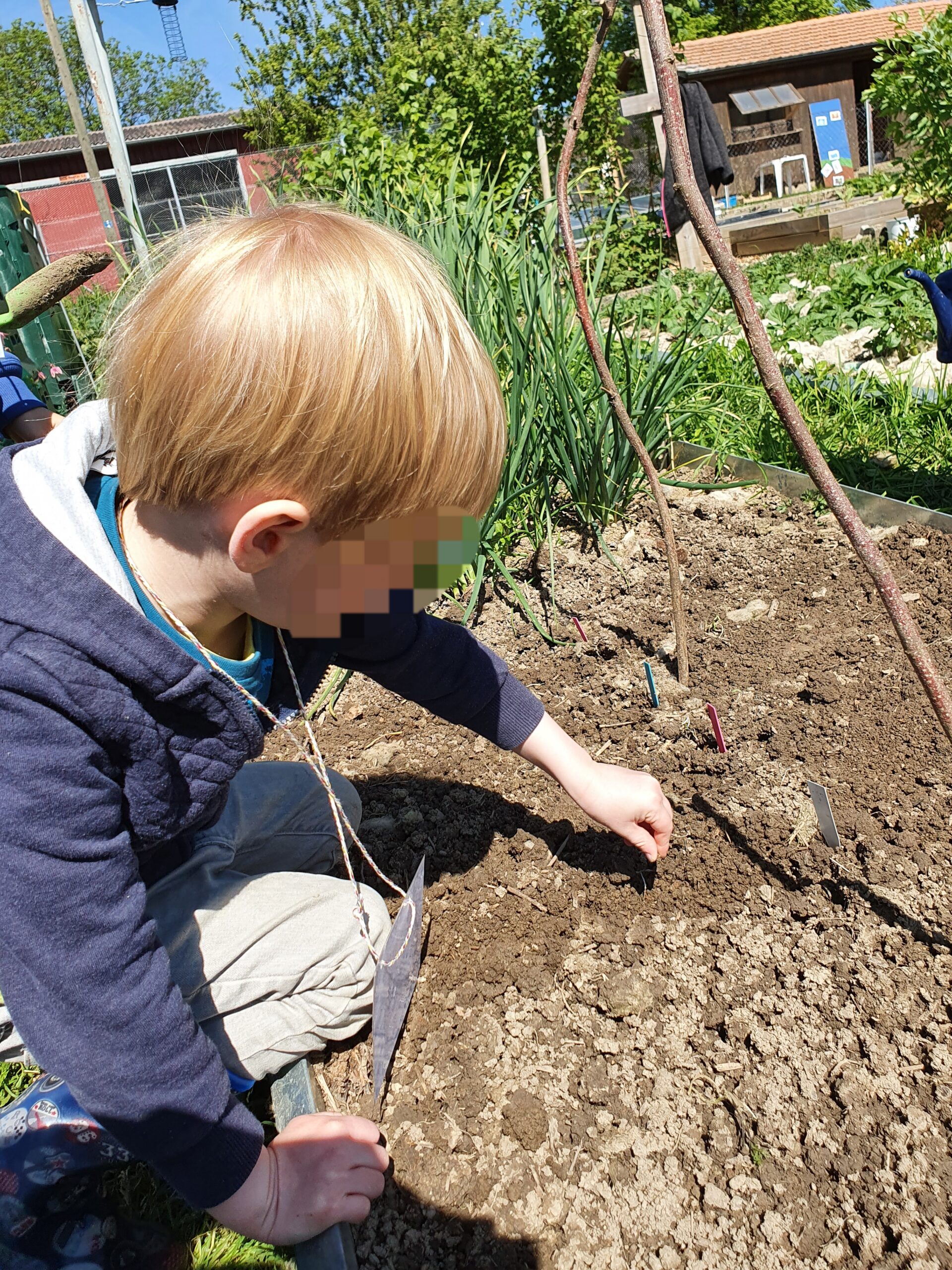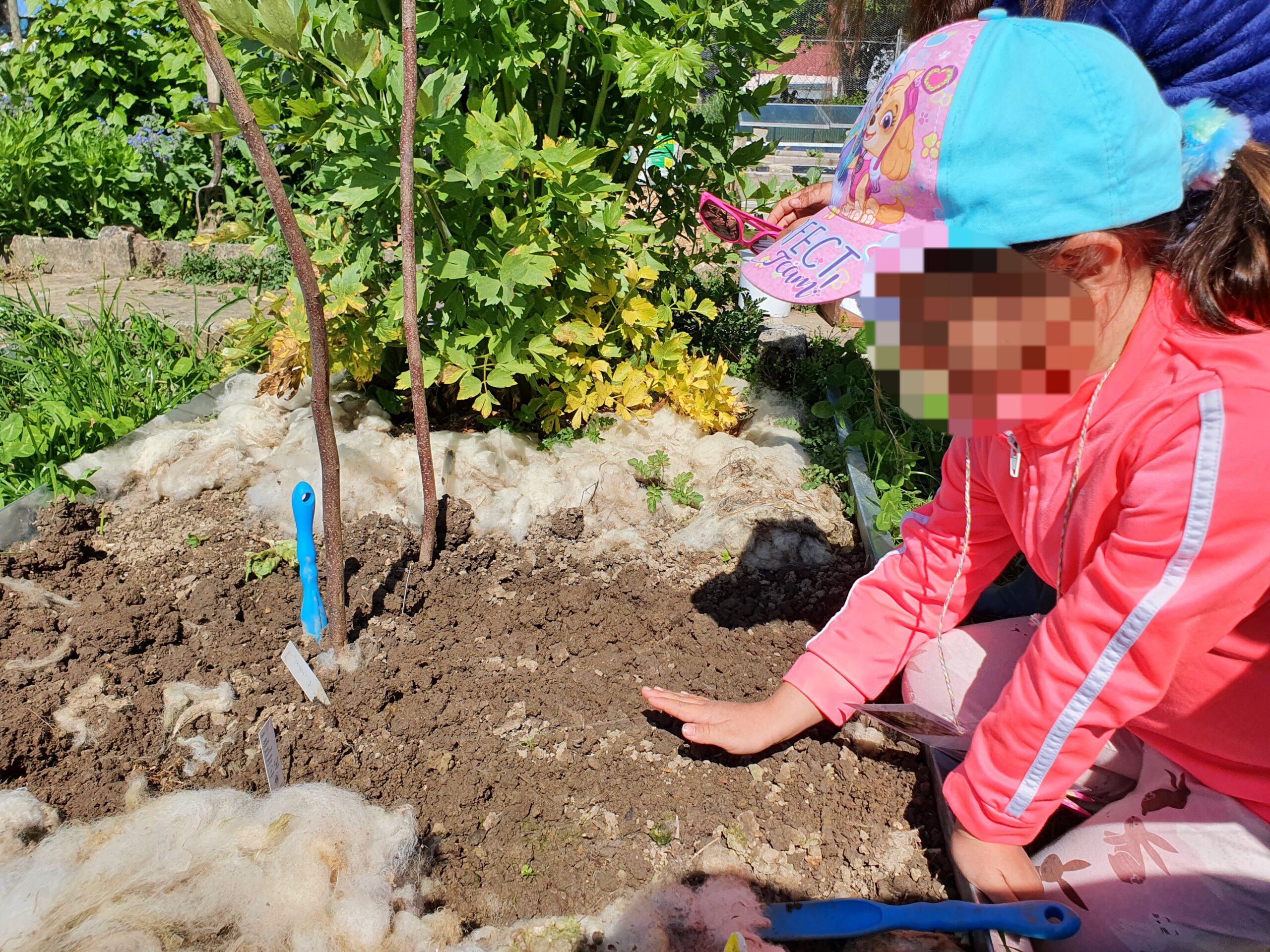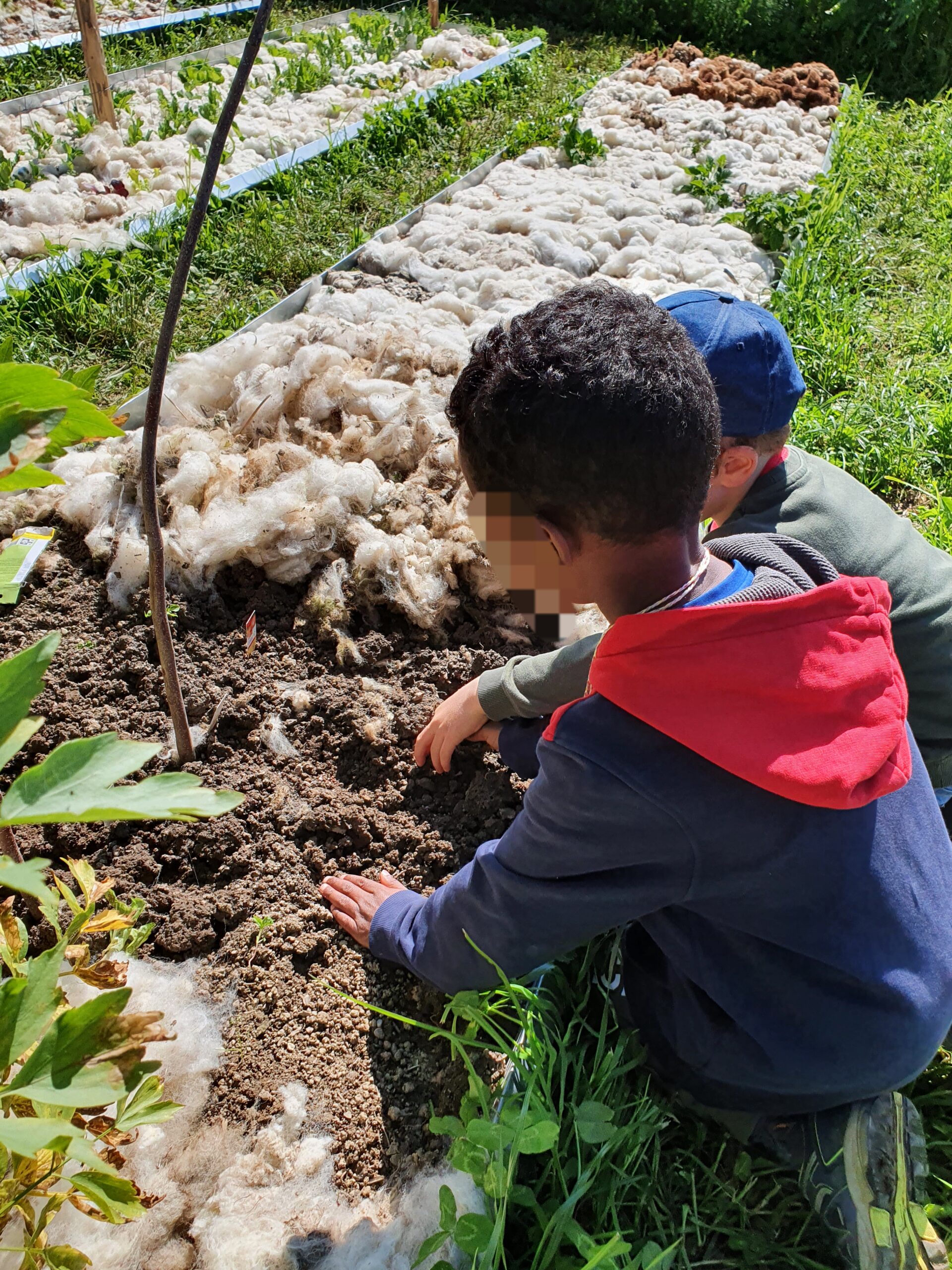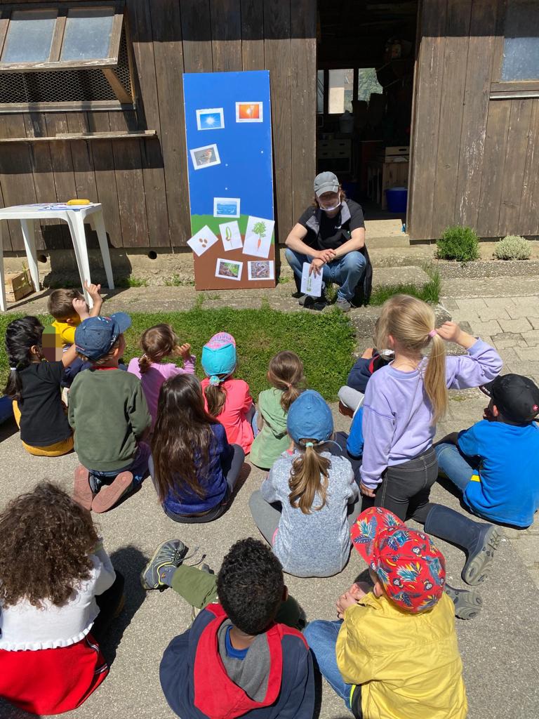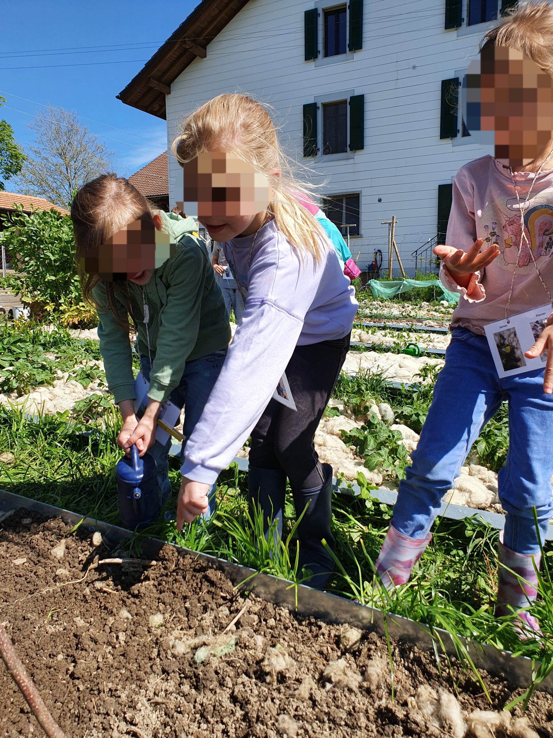 Ce vendredi matin, les élèves 1-2P de Annik Colomb sont venus découvrir le potager.