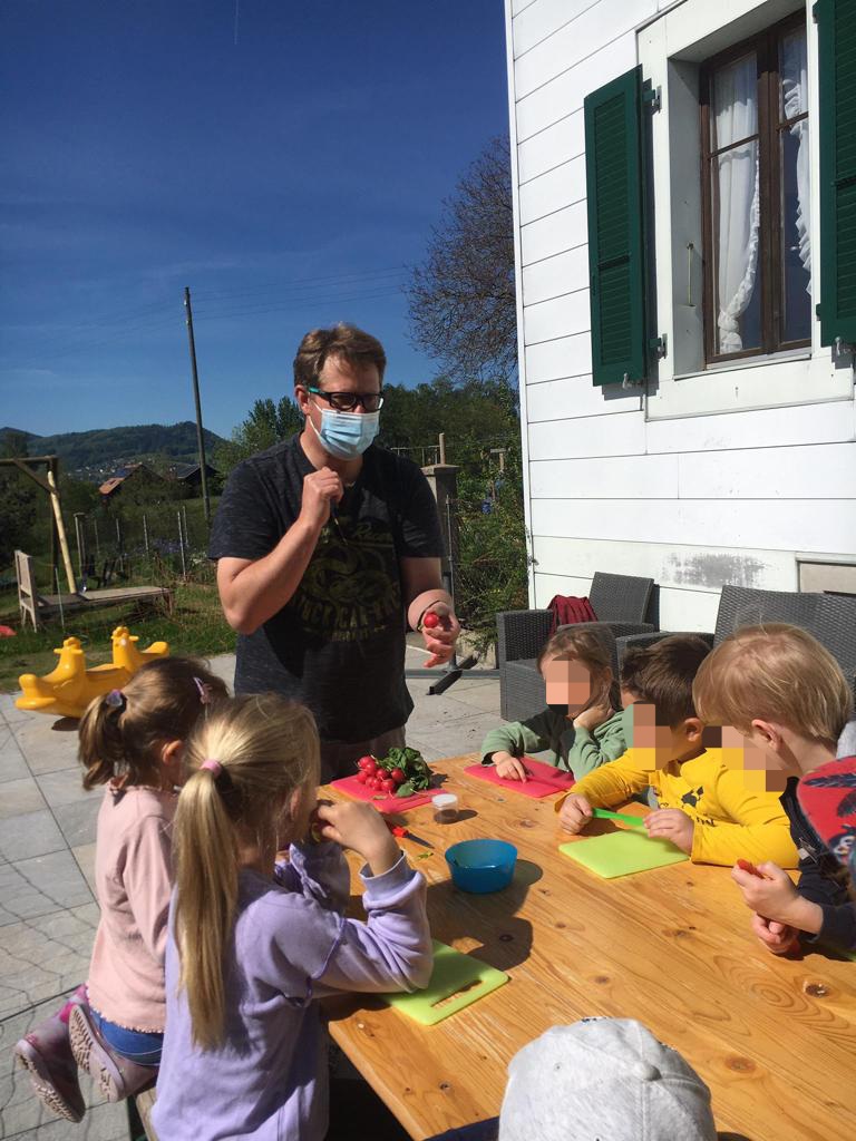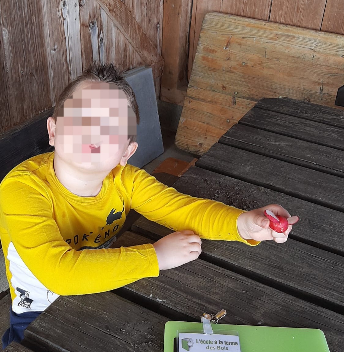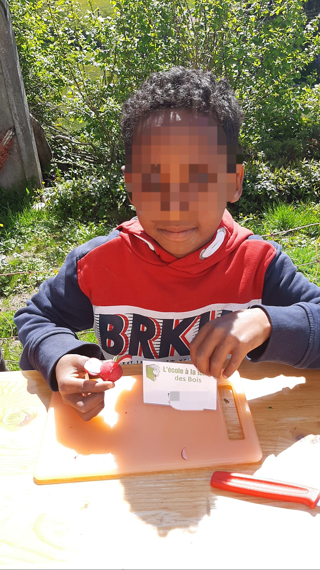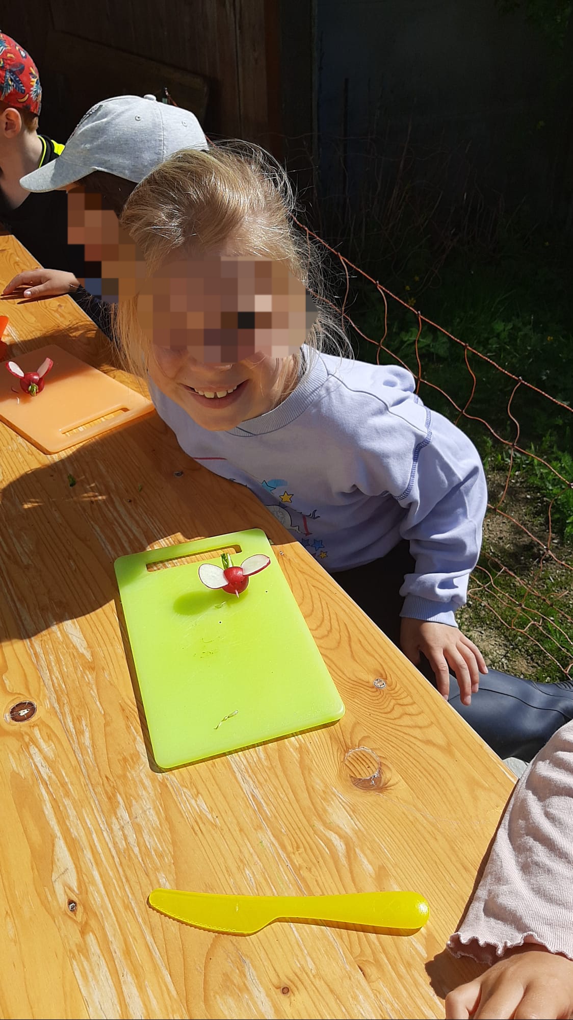La théorie est momentanément terminée, voici le temps de passer aux travaux pratiques par 2 équipes. Une équipe est avec moi au jardin pour semer des carottes 🥕 , des radis et de la salade à tondre . Nous avons même eu le temps de faire des pièges à vers de fils de fer et puis de pailler nos semis. Le deuxième groupe est avec Sébastien pour la confection de 🐁 avec des radis. Juste magnifique!!! 😍 Puis nous échangeons les groupes afin que tous puissent faire la même chose.