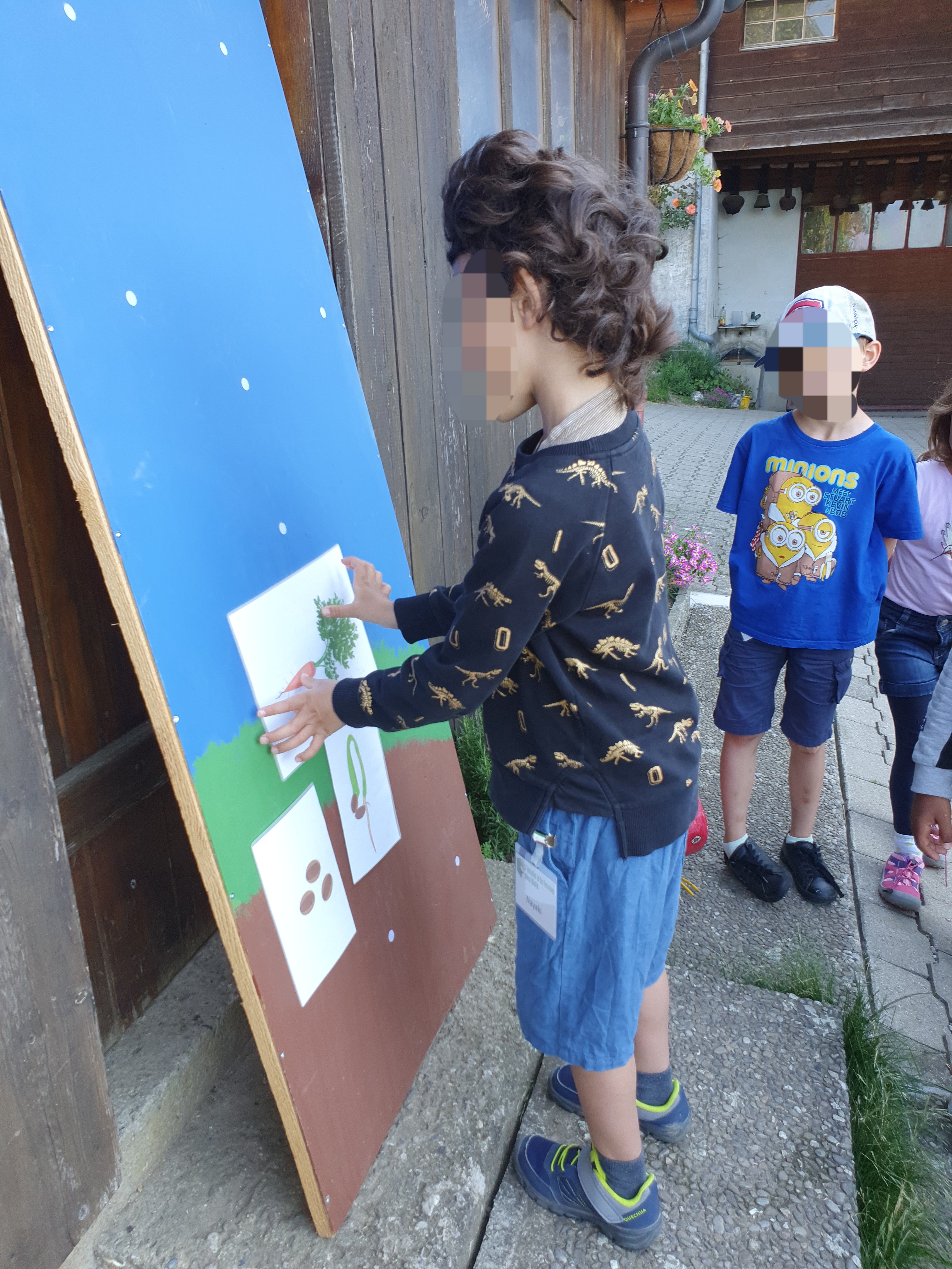 Puis nous retournons au panneau didactique pour parler des besoins de la plante et de la photosynthèse.