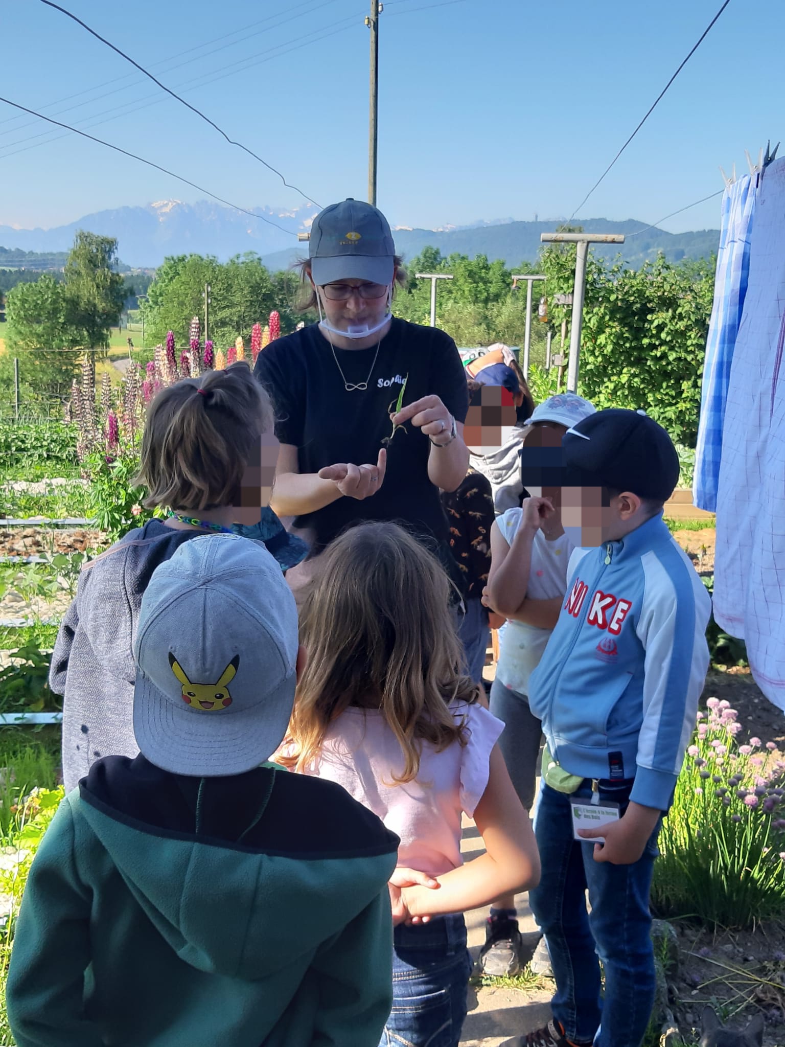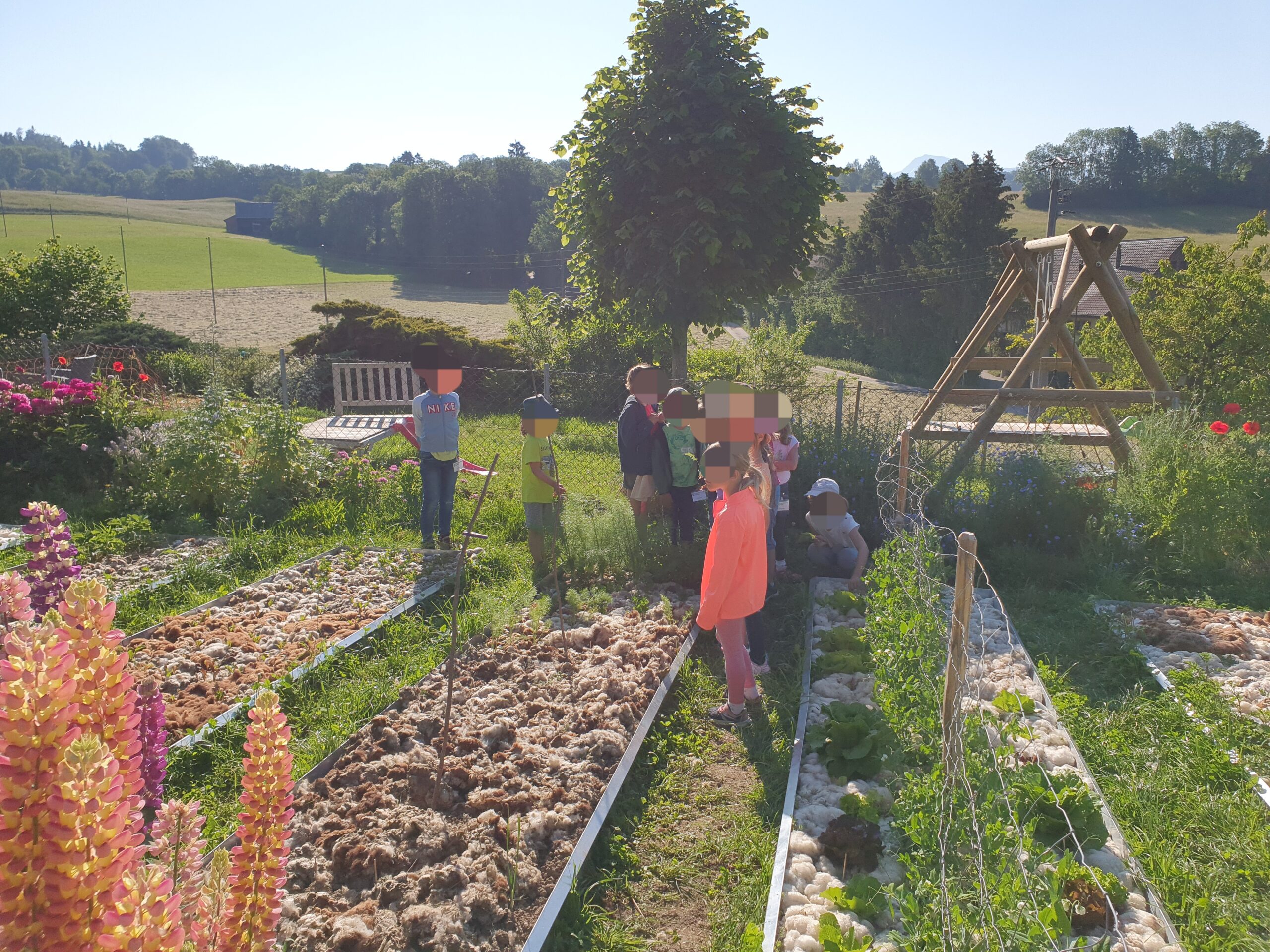 Nous observons le fenouil, les colraves et les salades🥬. Les enfants ont dû les rechercher dans le potager.