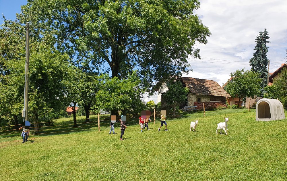 Une fois le repas terminé, nous passons chez les chèvres 🐐 pour un dernier câlin puis avant de partir joyeusement à la ferme de Fochaux. 🚜