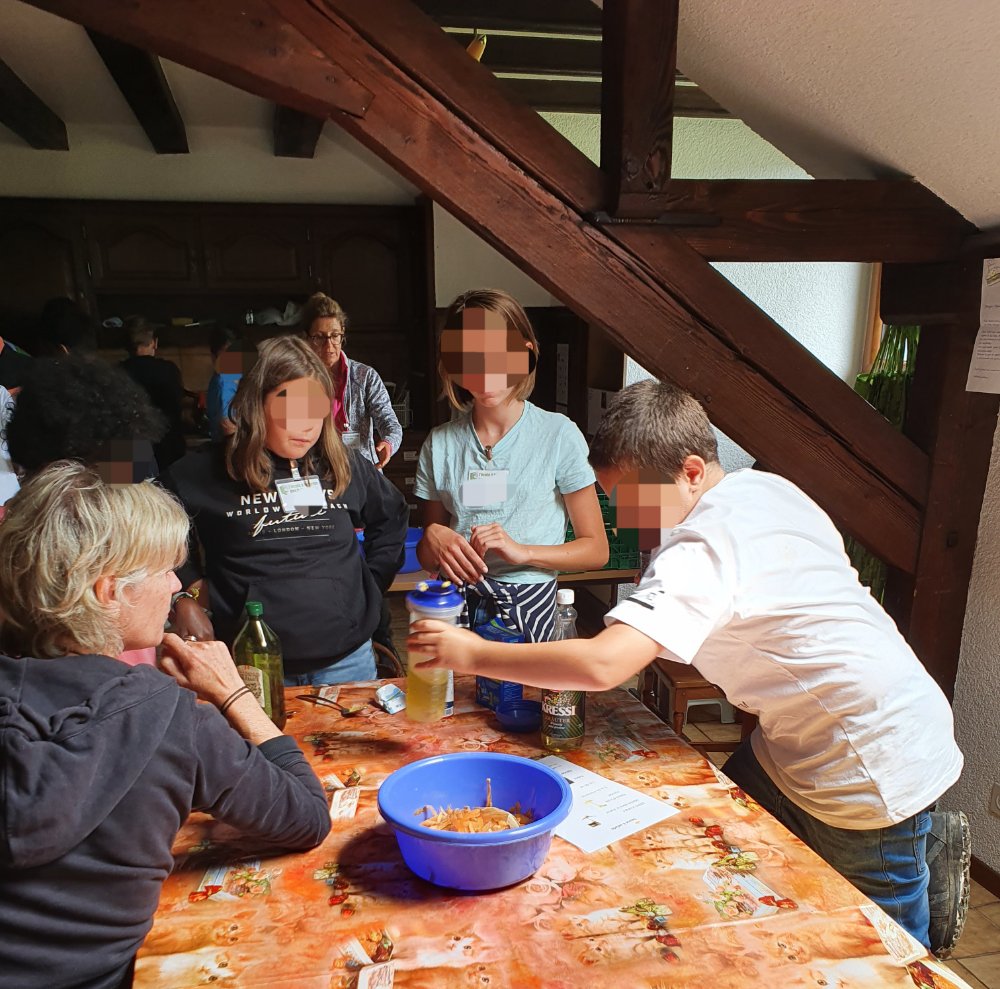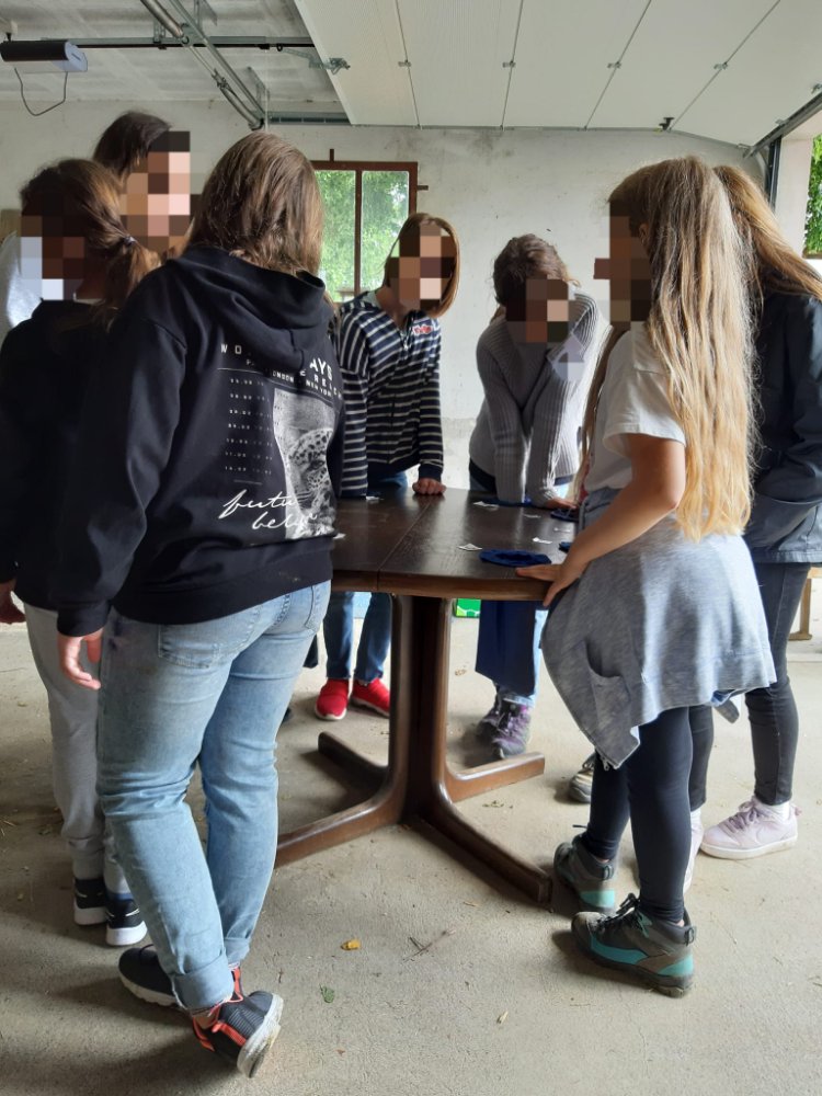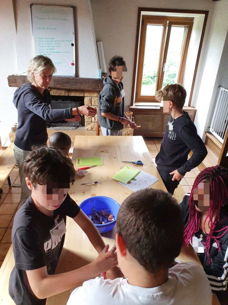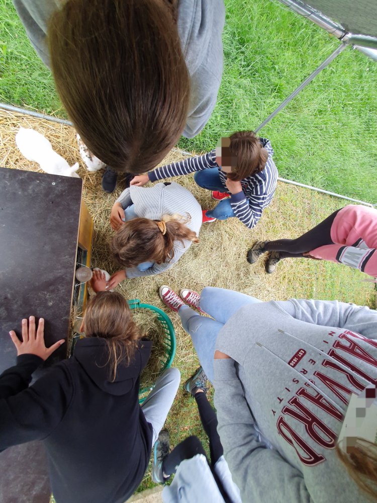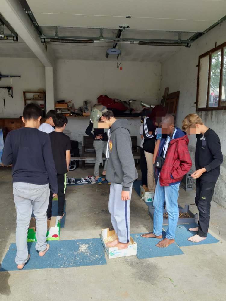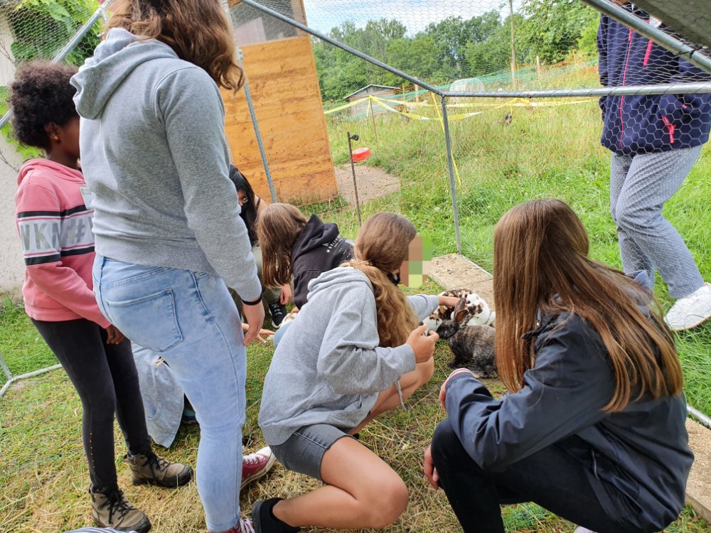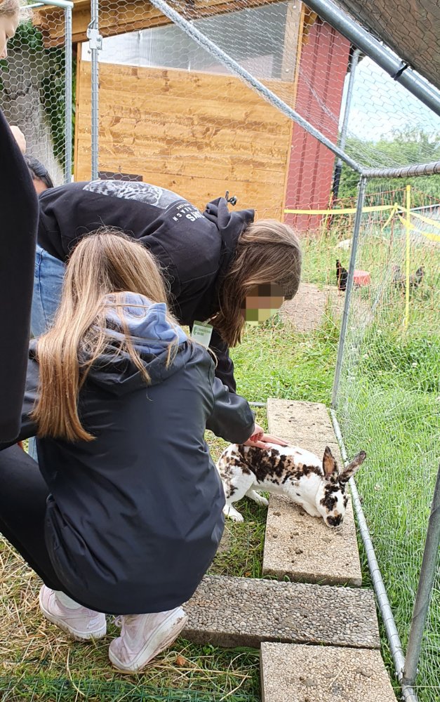 Nous avons fait 2 groupes pour alterner les activités avec les animaux et les jeux pédagogiques liés aux 5 sens. A chaque fois nous échangeons les groupes pour que chaque jeune puisse faire la même chose. 😉