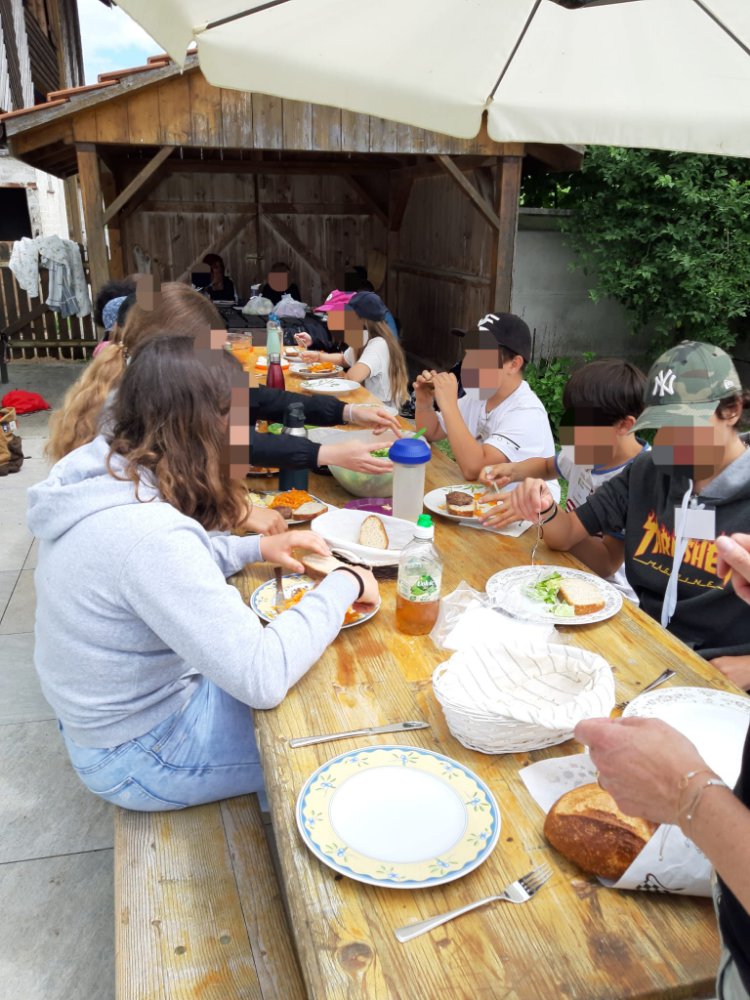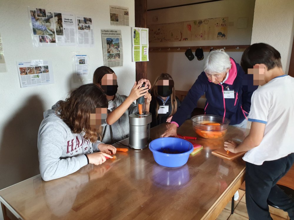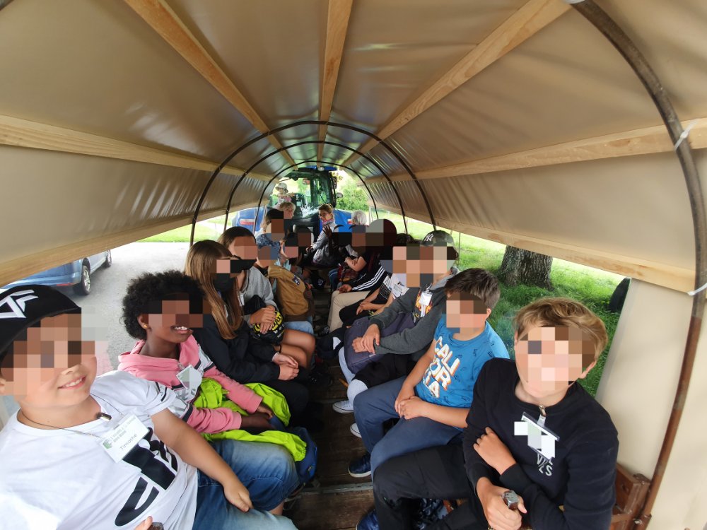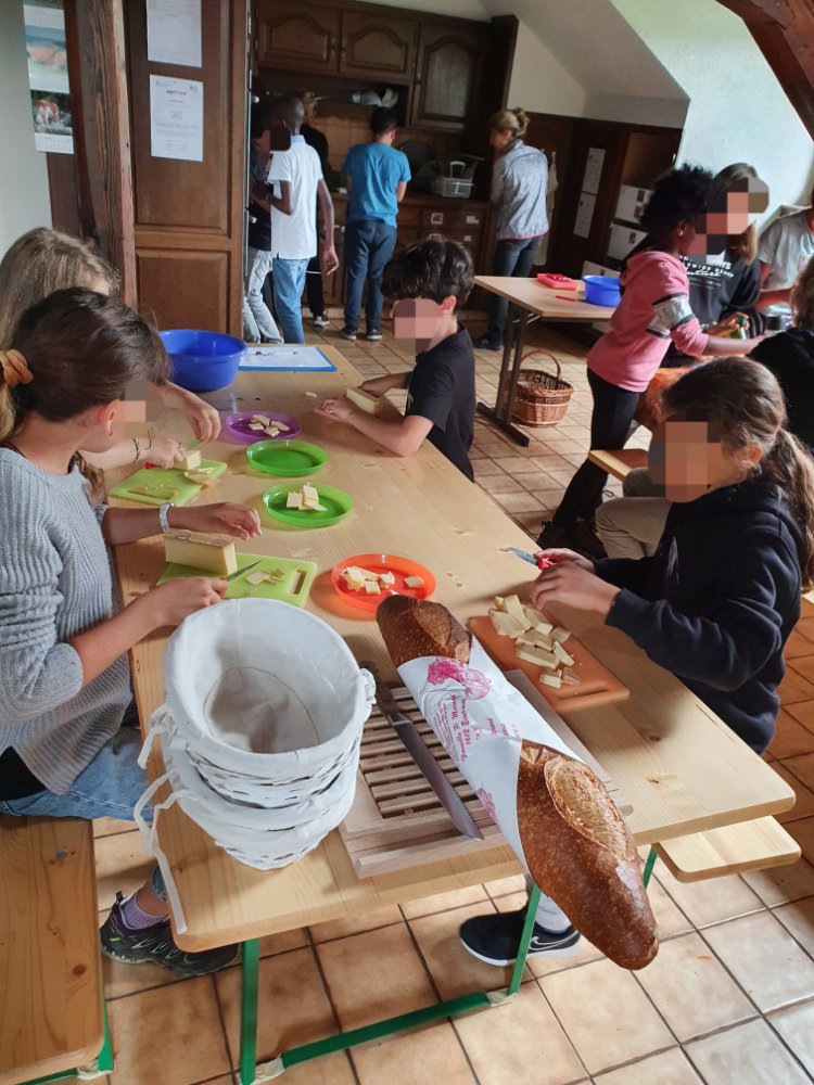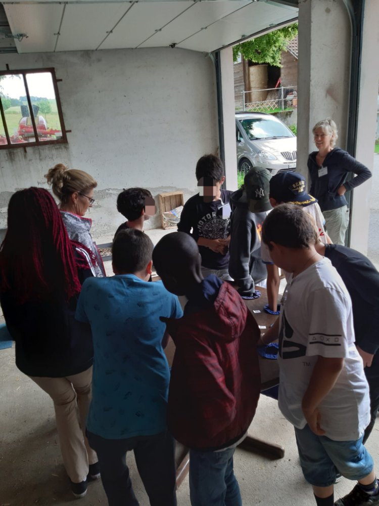Pour leur dernier jour d’école, les élèves (7-10H mélangés) sont venus, à pied, passer une journée à la ferme.