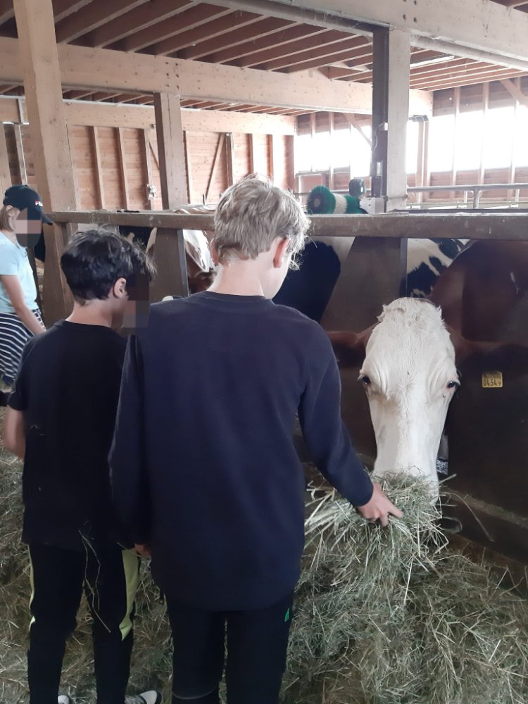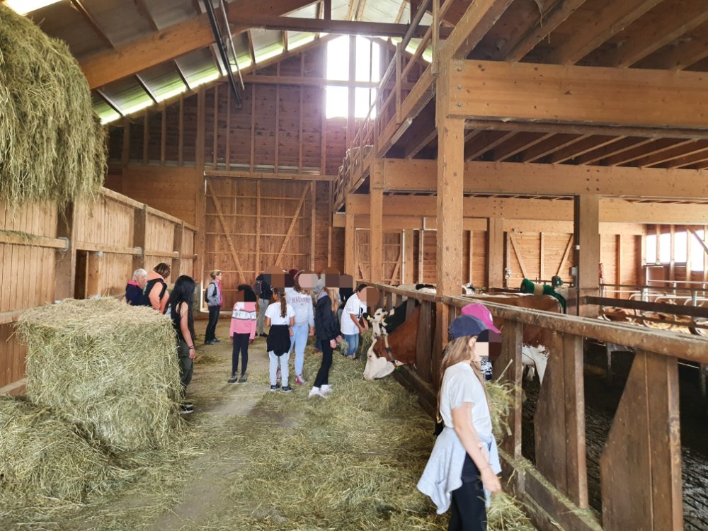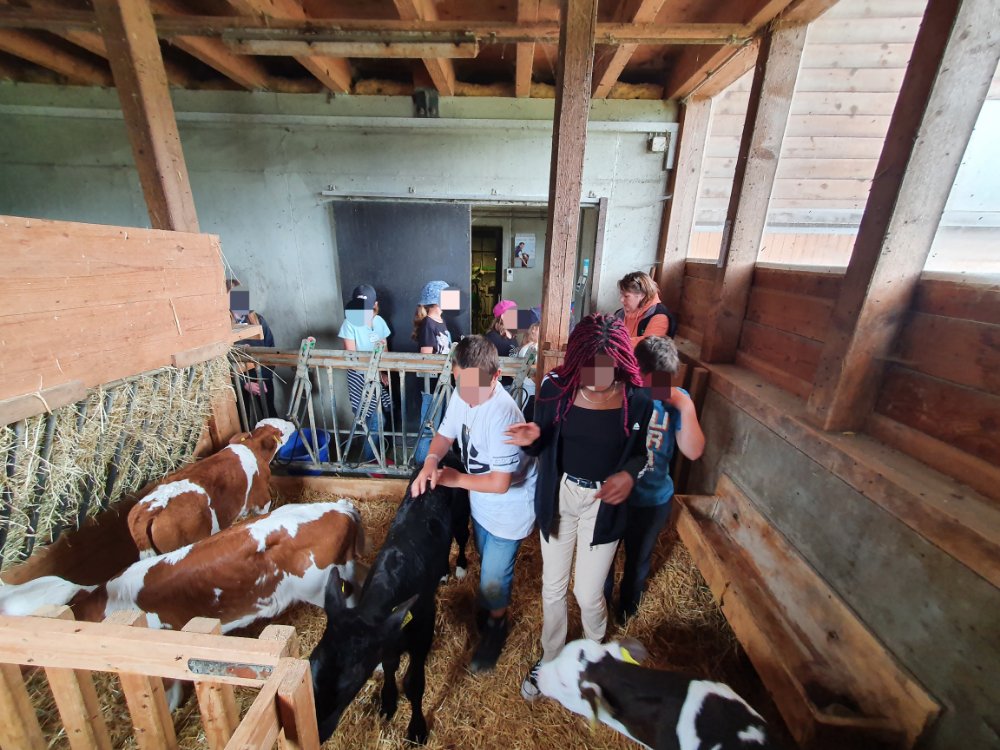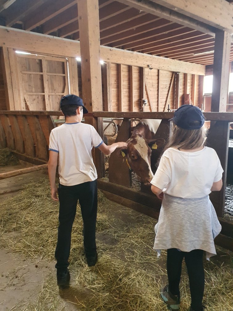 Nous avons approché et caressé les vaches 🐄. Découvert le chemin du lait en passant de la salle de traite à la chambre à lait. Pour finir chez les veaux par le moment des câlins! 😍