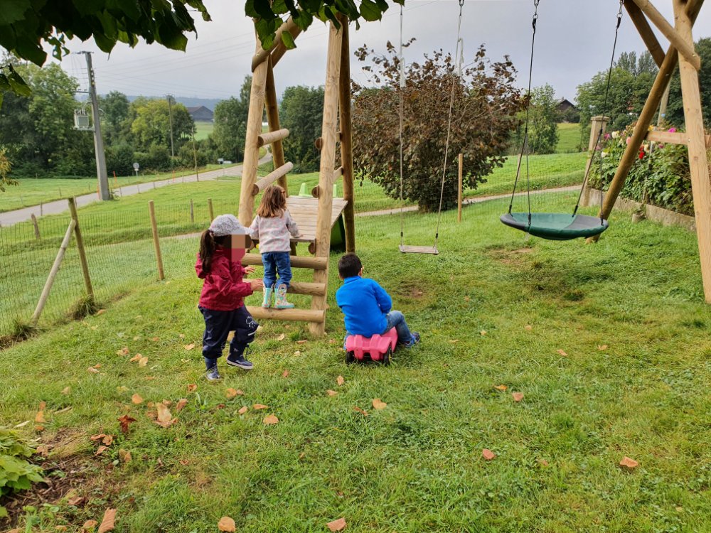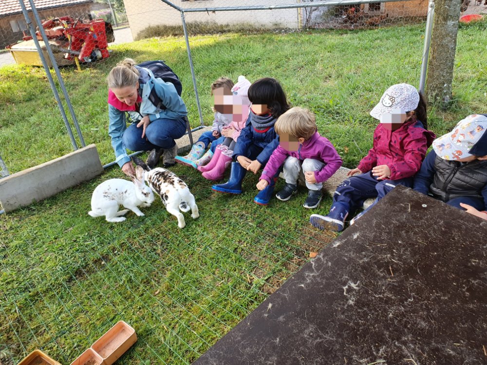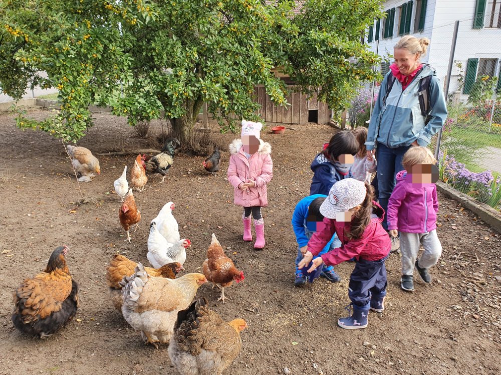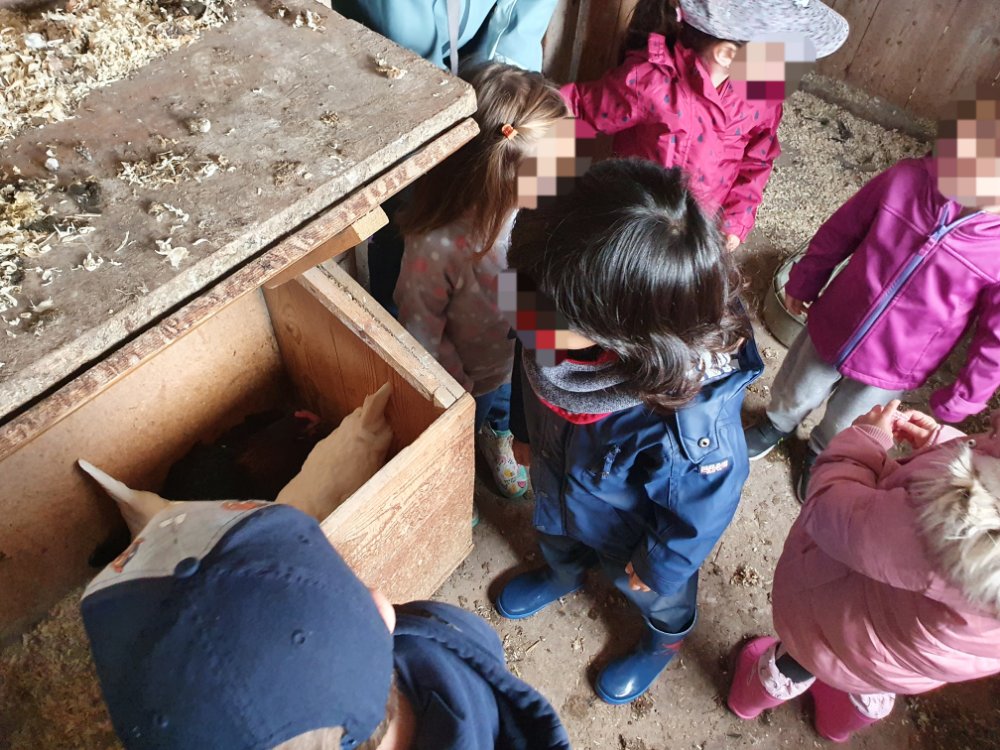 Ce mercredi les jeunes lutins de la Boîte à Couleurs d’Oron sont venus découvrir les animaux de la basse-cour.