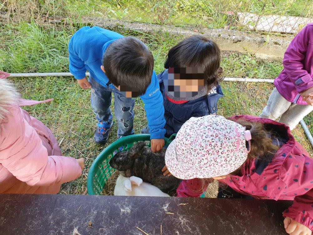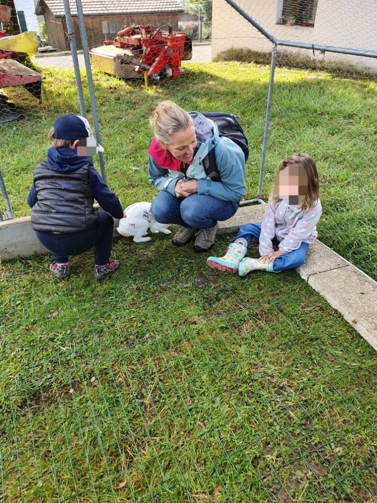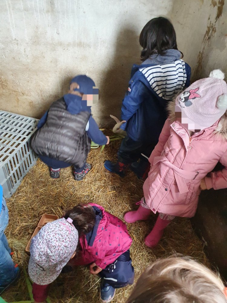 Après une pause bien méritée, nous voilà en route pour à la découverte de nos boules de poiles, les lapins 🐰. Nous en profitons pour leur donner des épluchures de légumes. Sans en oublier, évidemment! 🥰
