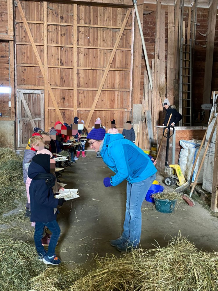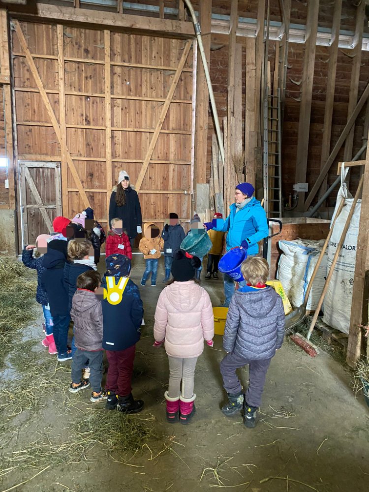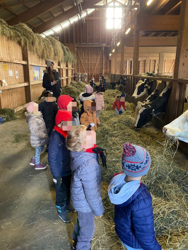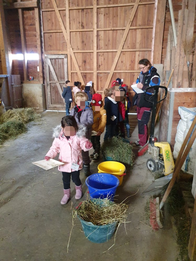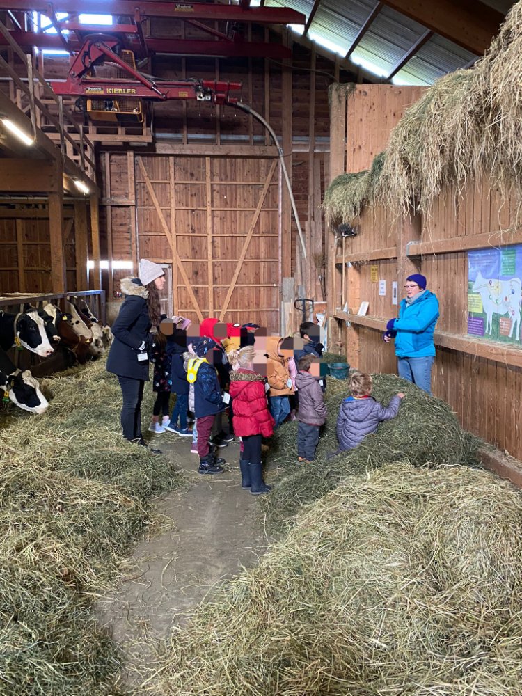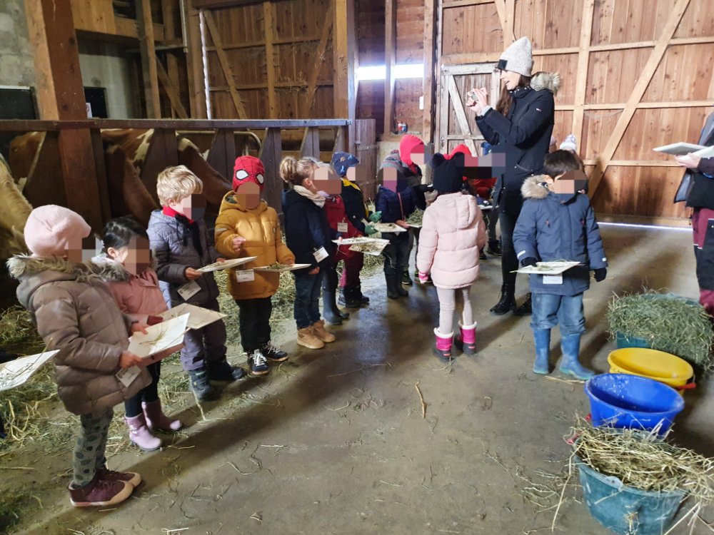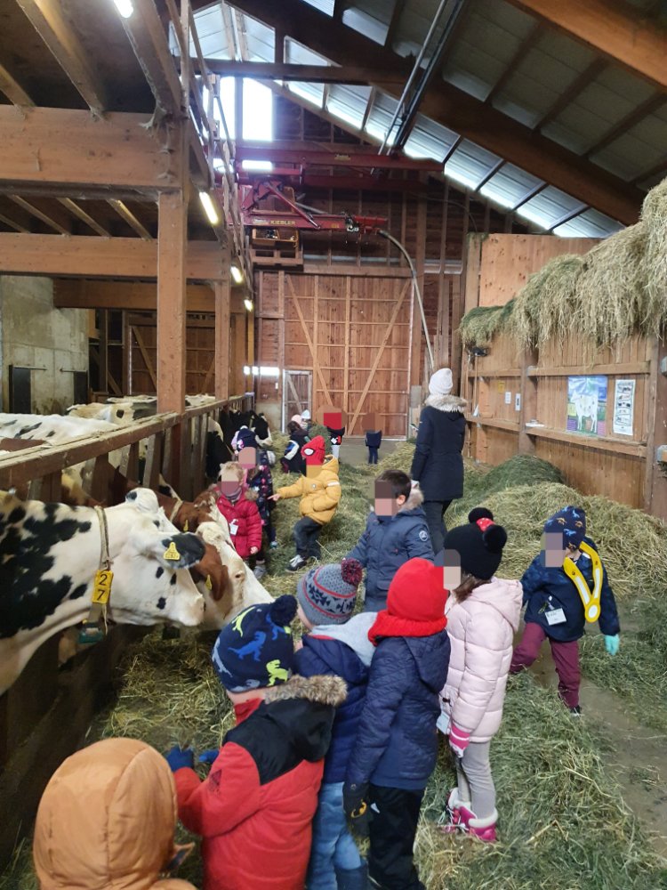 Ce mardi matin, les élèves 1-2P de la classe de Nathalie Andrey d’Oron sont venus découvrir l’étable.