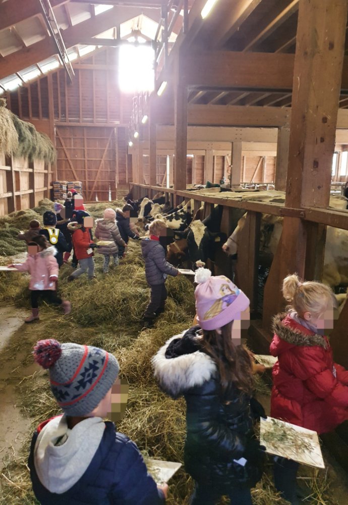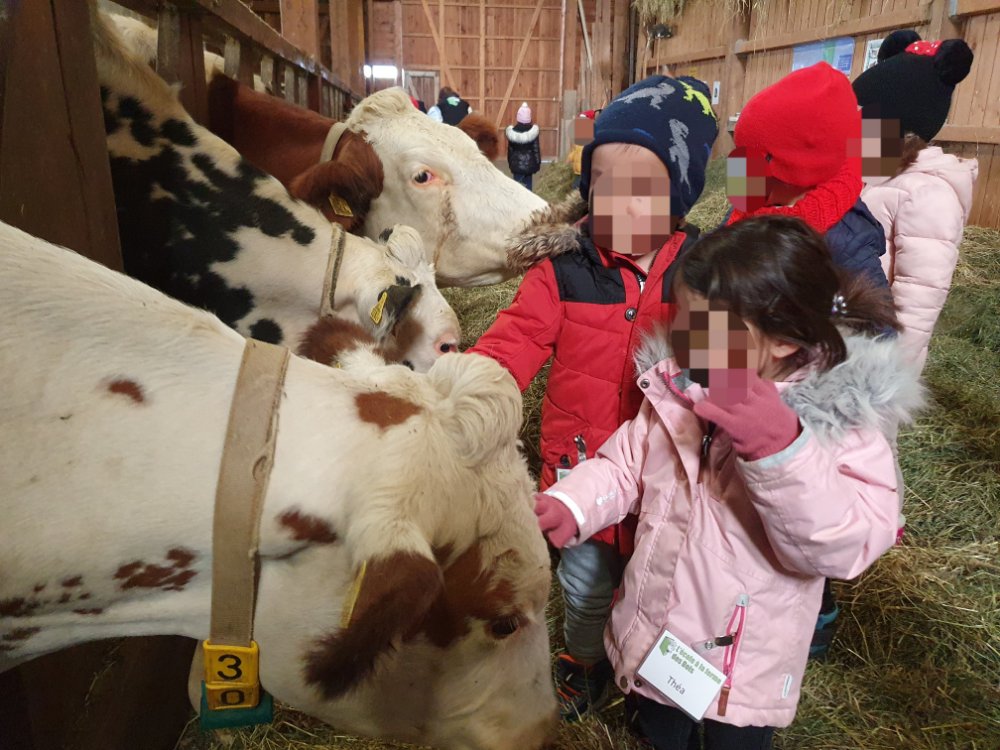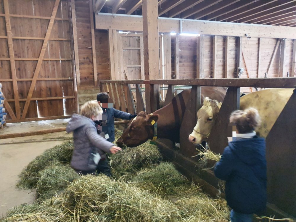 Comment s’appelle la maison de la vache? 🤔 Très rapidement les élèves me répondent : « l’étable ». Puis nous allons à l’intérieur pour voir et approcher les vaches. 🐮