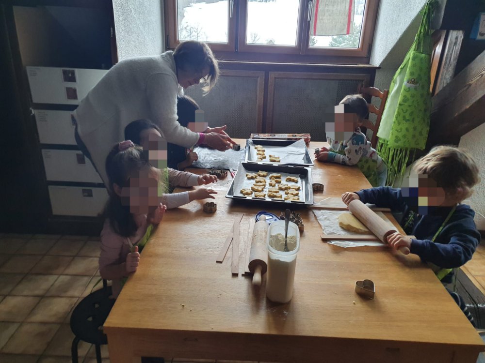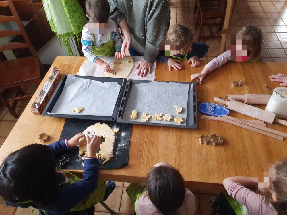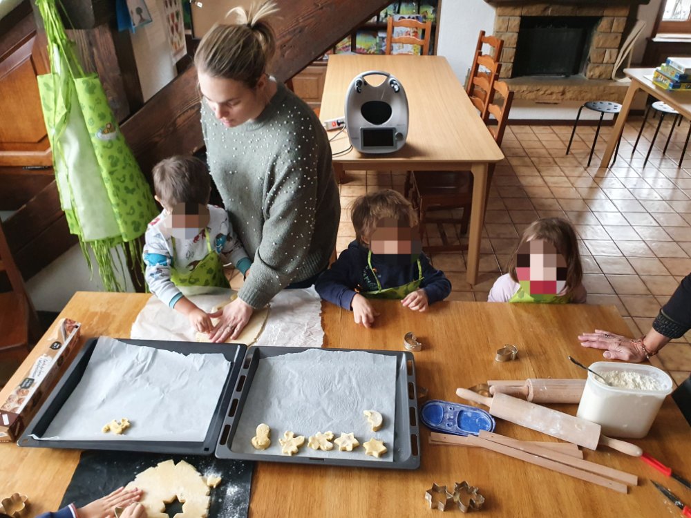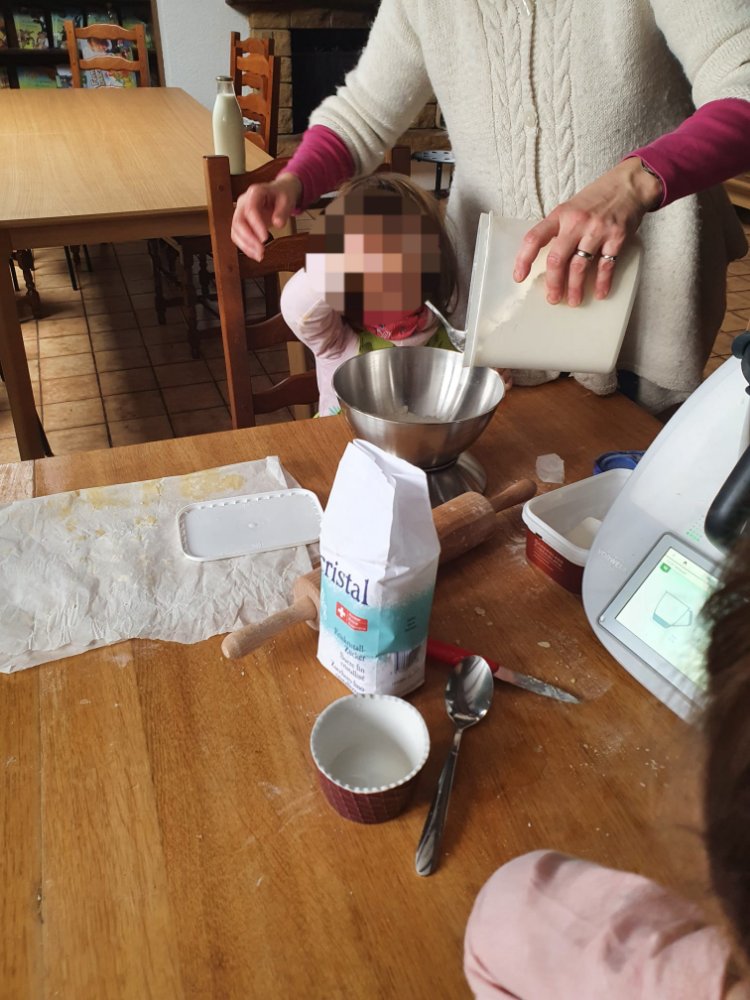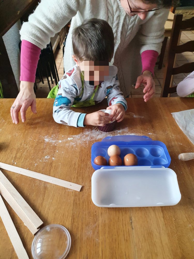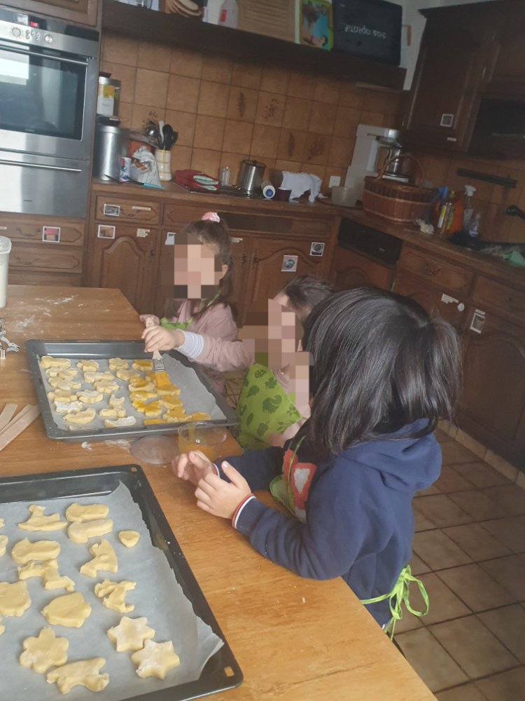 Les œufs en main, nous partons fabriquer des biscuits de Noël en cuisine. 🎅