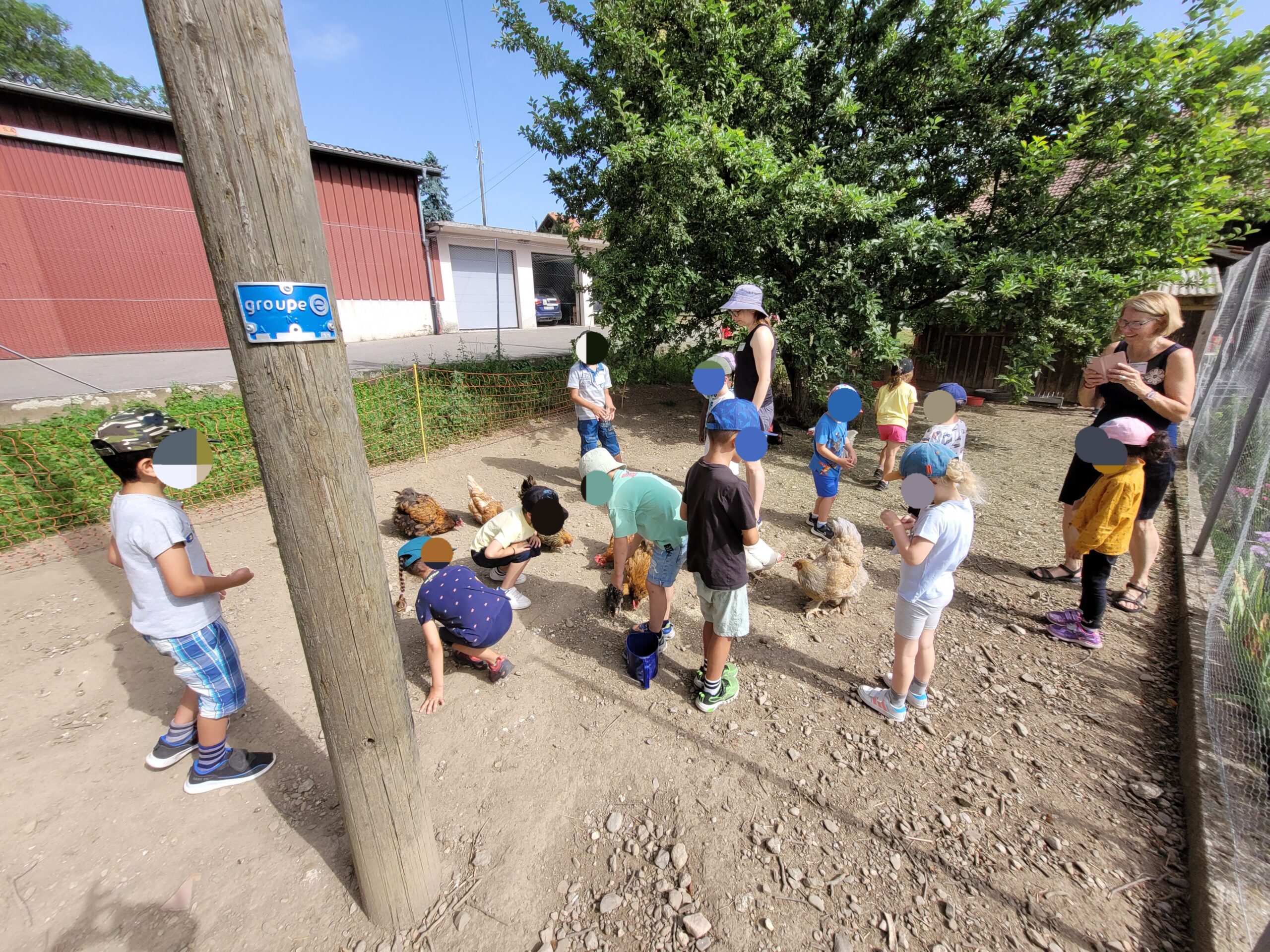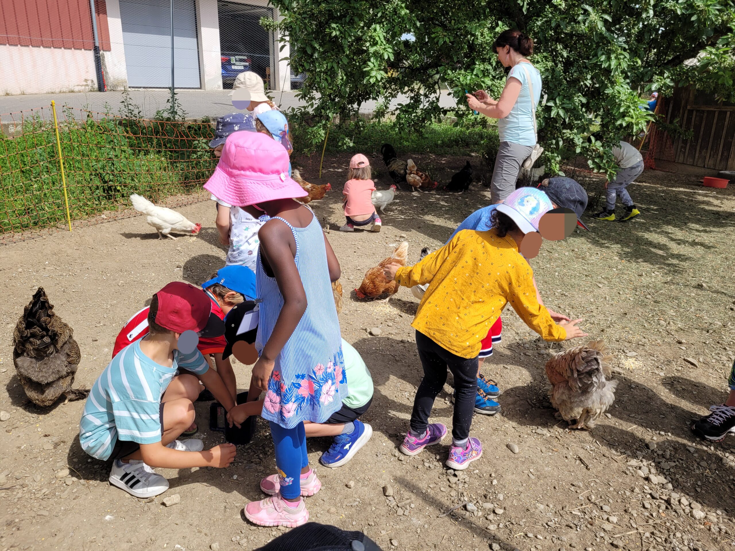 Pour la première partie de la matinée, le premier groupe vient avec moi pour découvrir les poules 🐔 et leur habitat. A l’intérieur du poulailler les élèves découvrent les mangeoires et abreuvoirs, les perchoirs et les pondoirs. Nous parlons du nombre d’œuf que va pondre une poule par jour et pourquoi les œufs sont de différentes couleurs. 🤔