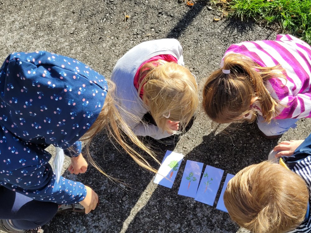 Dehors, par groupe de 2, les élèves vont choisir 1 légume. Une fois choisi, nous les aidons à le récolter. Sur la terrasse, par un jeu à l’aide d’images, les enfants vont découvrir de quelle famille appartient le légume qu’ils ont choisi.