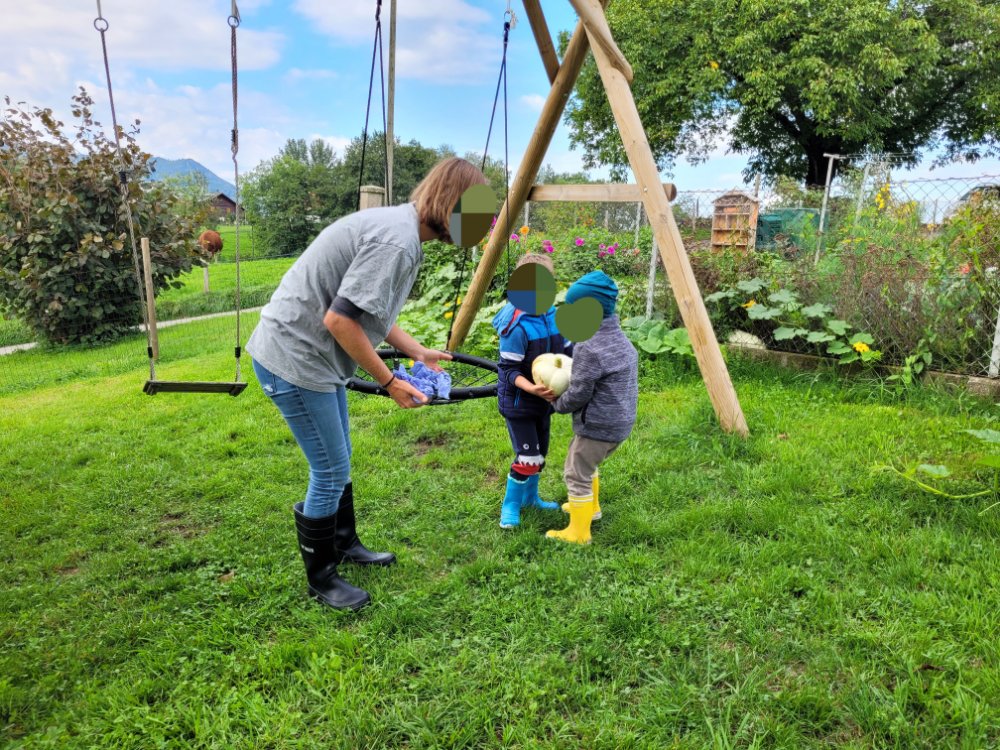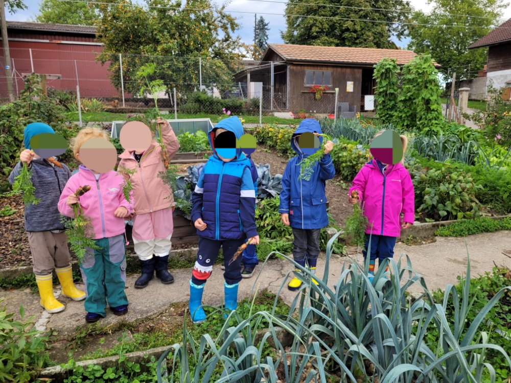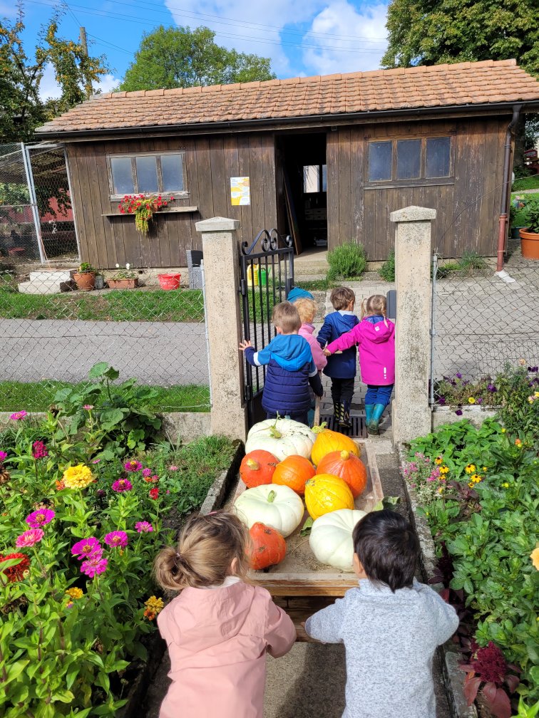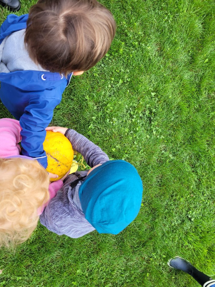 La semaine passée, 7 jeunes lutins (2.5 à 4 ans) sont venus découvrir ce qui se passe au potager en automne.