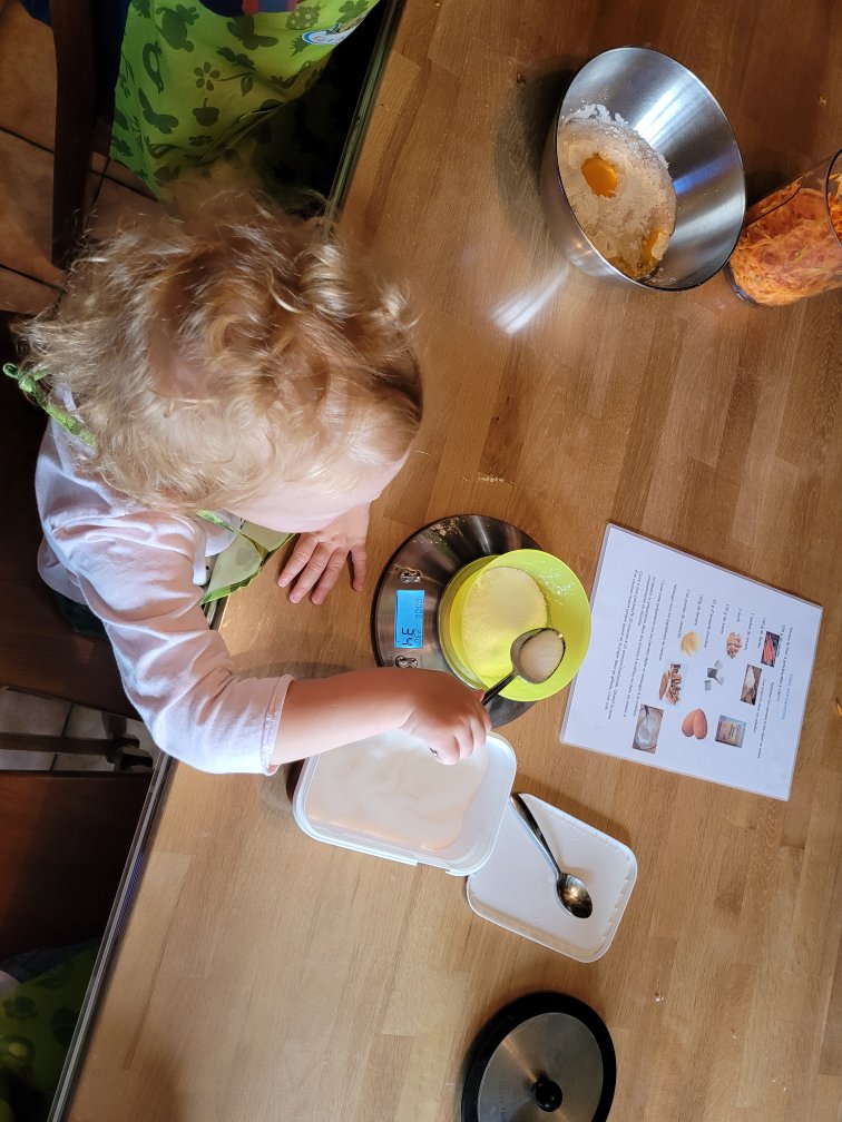 Les carottes 🥕 étant râpées, nous nous attaquons à la recette pour faire des mini gâteaux aux carottes. Manches retroussées 💪🏻, nous voilà tout motivé à cuisiner.