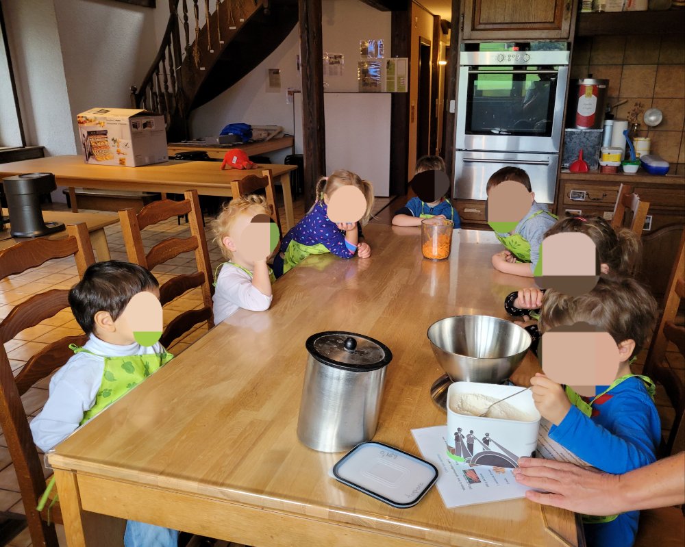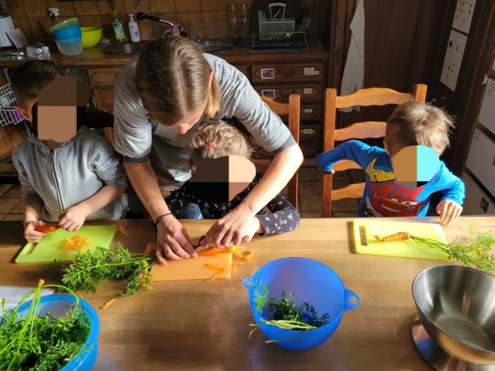 Une fois le potager visité, nous prenons chacun 1 carotte 🥕 avec nous pour aller en cuisine.