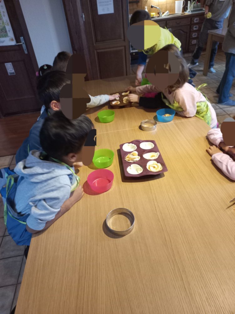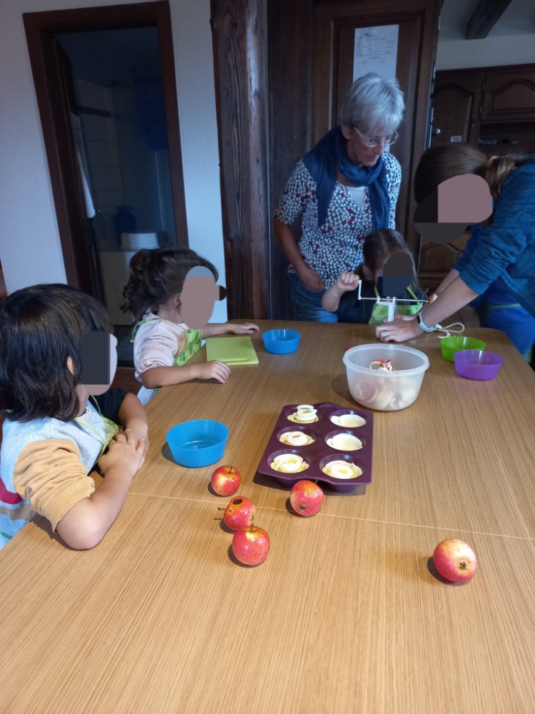 Pour commencer, les élèves ont récolté des pommes pour faire des tartelettes qui ont été dégustées soit à la récré ou pour le dessert 🍨