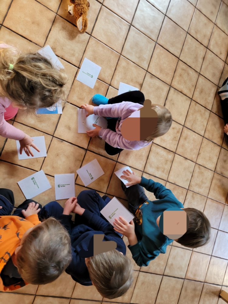Le jeu du toucher : dans des sacs, j’y ai mis ce que mange et boit le lapin. Les enfants le découvrent en y plongeant la main. Certain non pas résister à l’envie de guigner ce qui s’y cache.