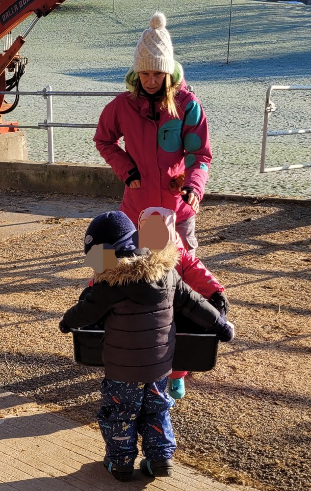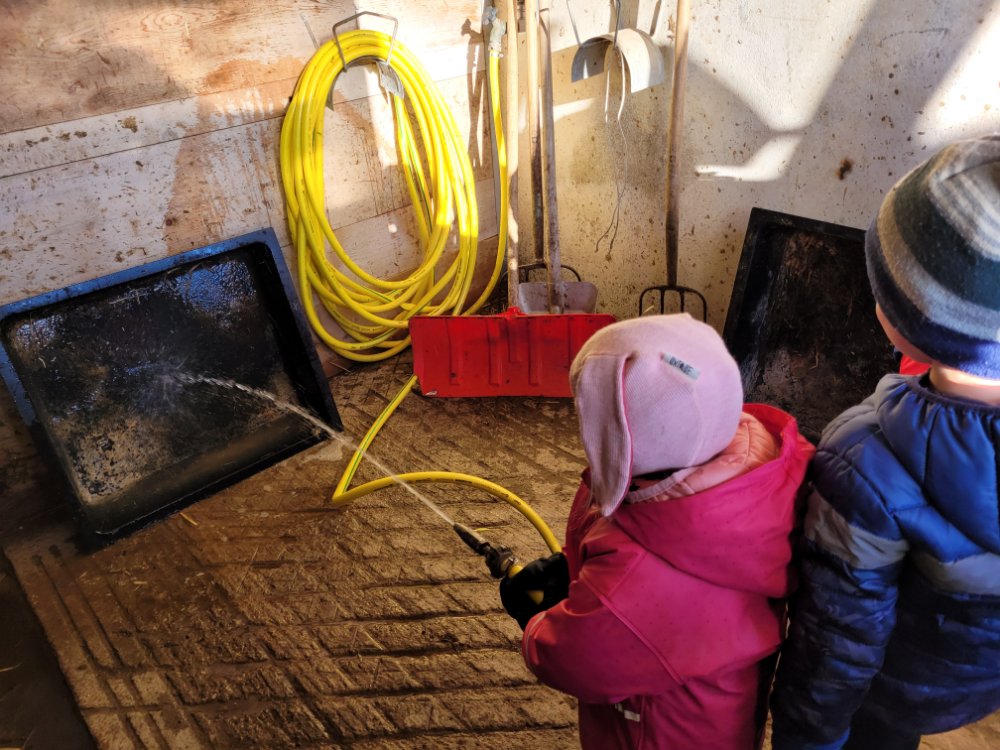 Malgré leur dur labeur, les enfants ont froid aux mains et aux pieds. Vue que nos lapins sont au propre et nourrit, nous allons nous réchauffer en salle. 😅